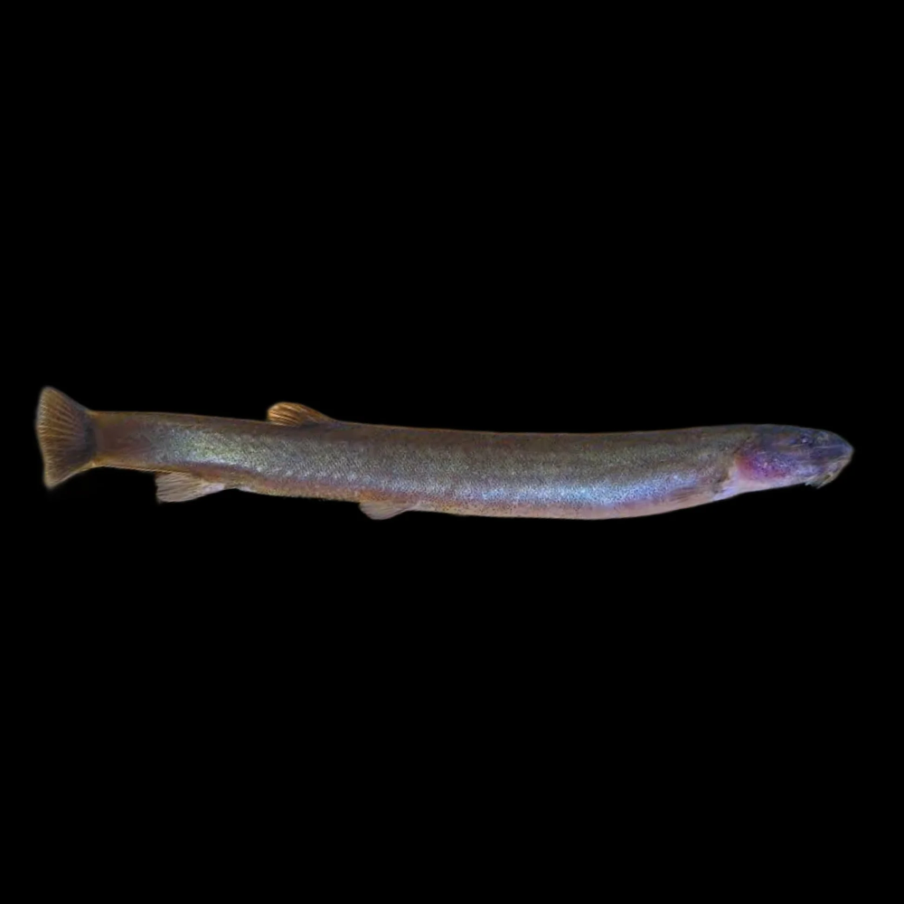 • Cuerpo alargado y serpenteante de color marrón oscuro o negro.