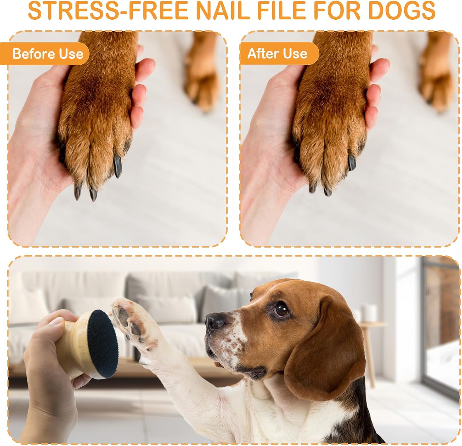 Lima de uñas para perro: esta lima de uñas para perro es más suave y más libre de estrés que las herramientas tradicionales de corte de uñas. Aunque la lima de uñas para perro puede tardar un poco más que los métodos tradicionales, tu compañero peludo puede disfrutar del proceso, acurrucado en tu regazo con una sonrisa contenta.