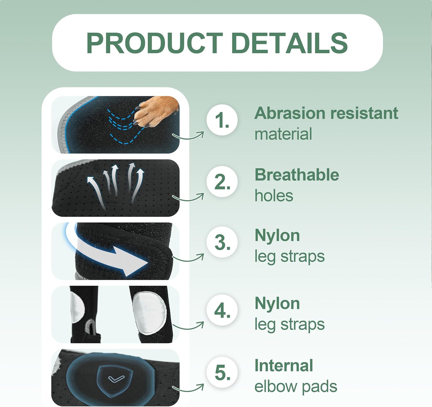 Alta calidad: las mangas para patas de perro cuentan con un tejido exterior duradero que es suave, resistente a los arañazos y a la abrasión, lo que garantiza una durabilidad superior. Protege las heridas durante las actividades al aire libre y evita lamer y desgarros. La capa intermedia SBR perforada ultrafina de 0.039 in ofrece propiedades a prueba de golpes, aislamiento térmico e impermeables. La capa interior transpirable y agradable al tacto garantiza comodidad, lo que permite que tu perro se mueva libremente y acelere la recuperación.