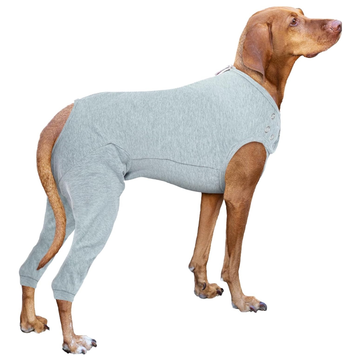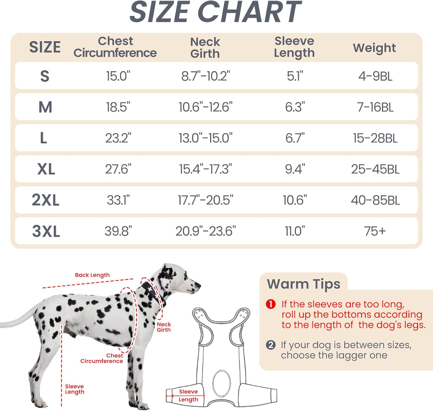 Tela transpirable y suave: la ropa antilamer para perros está hecha de una mezcla ligera y transpirable de algodón, poliéster y tela de elastano, que es suave y suave para heridas frágiles. El mameluco para perro después de la cirugía protege las heridas mientras permite una buena ventilación. Cómodo mameluco para perros después de la cirugía en cualquier temporada.