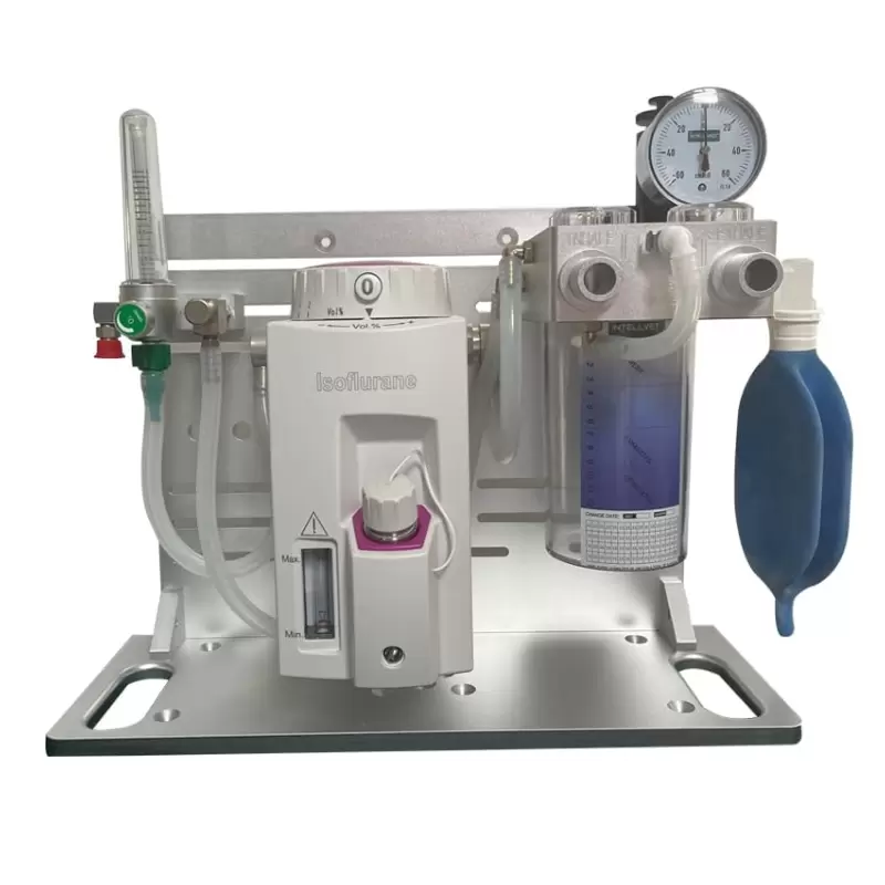 Máquina de anestesia veterinaria móvil SV-1300. Es compatible con salas de CT y MRI, garantizando seguridad en procedimientos avanzados para animales en todo Chile.