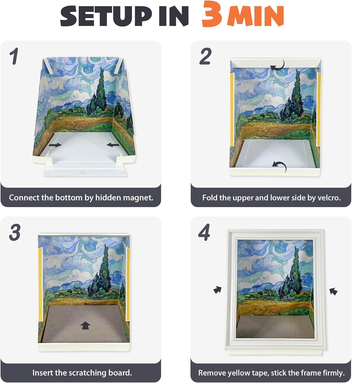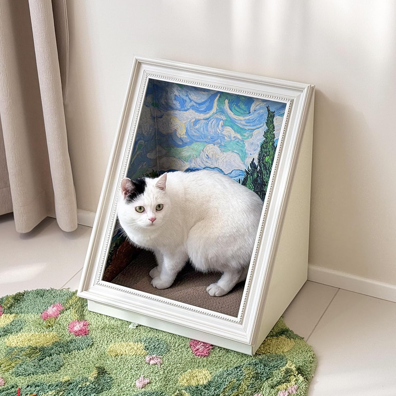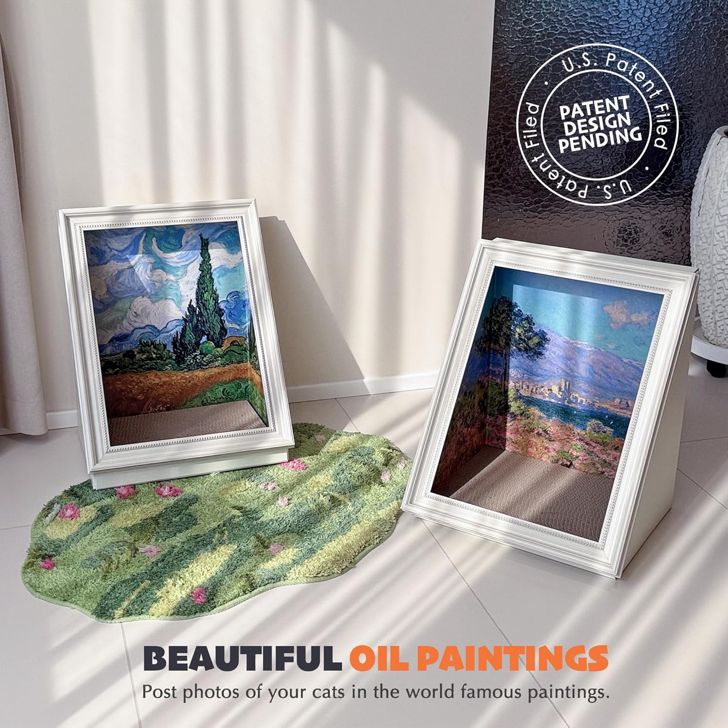 CASA DE PINTURA AL ÓLEO: Inspirado en la pintura al óleo y los suministros para gatos, lo convertimos en una cueva de gatos de obras de arte mientras satisfacen las necesidades de rascado del gato.