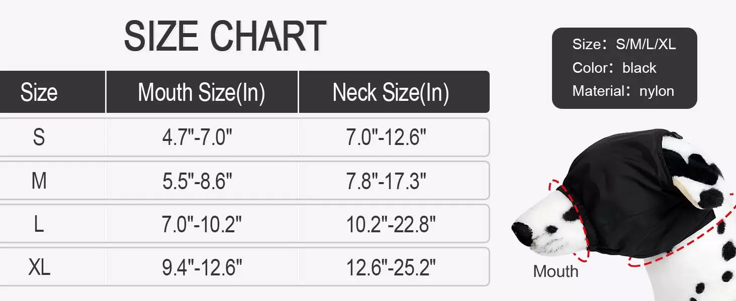Talla S: circunferencia de la boca 4.72-7.09 pulgadas, circunferencia del cuello 7.09-12.6 pulgadas