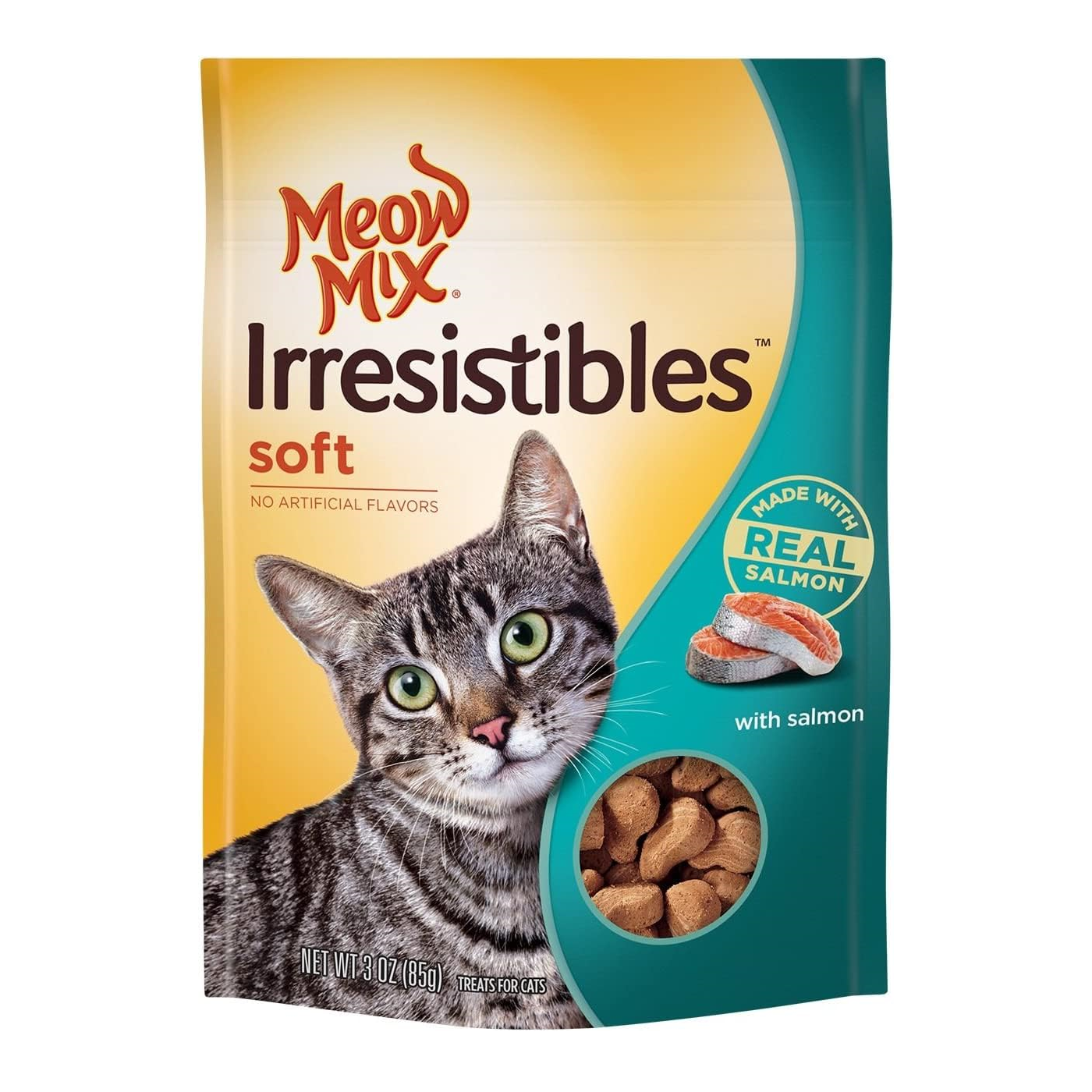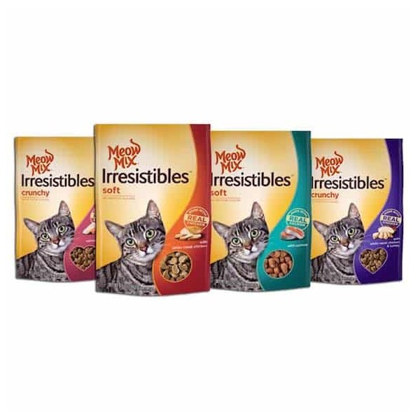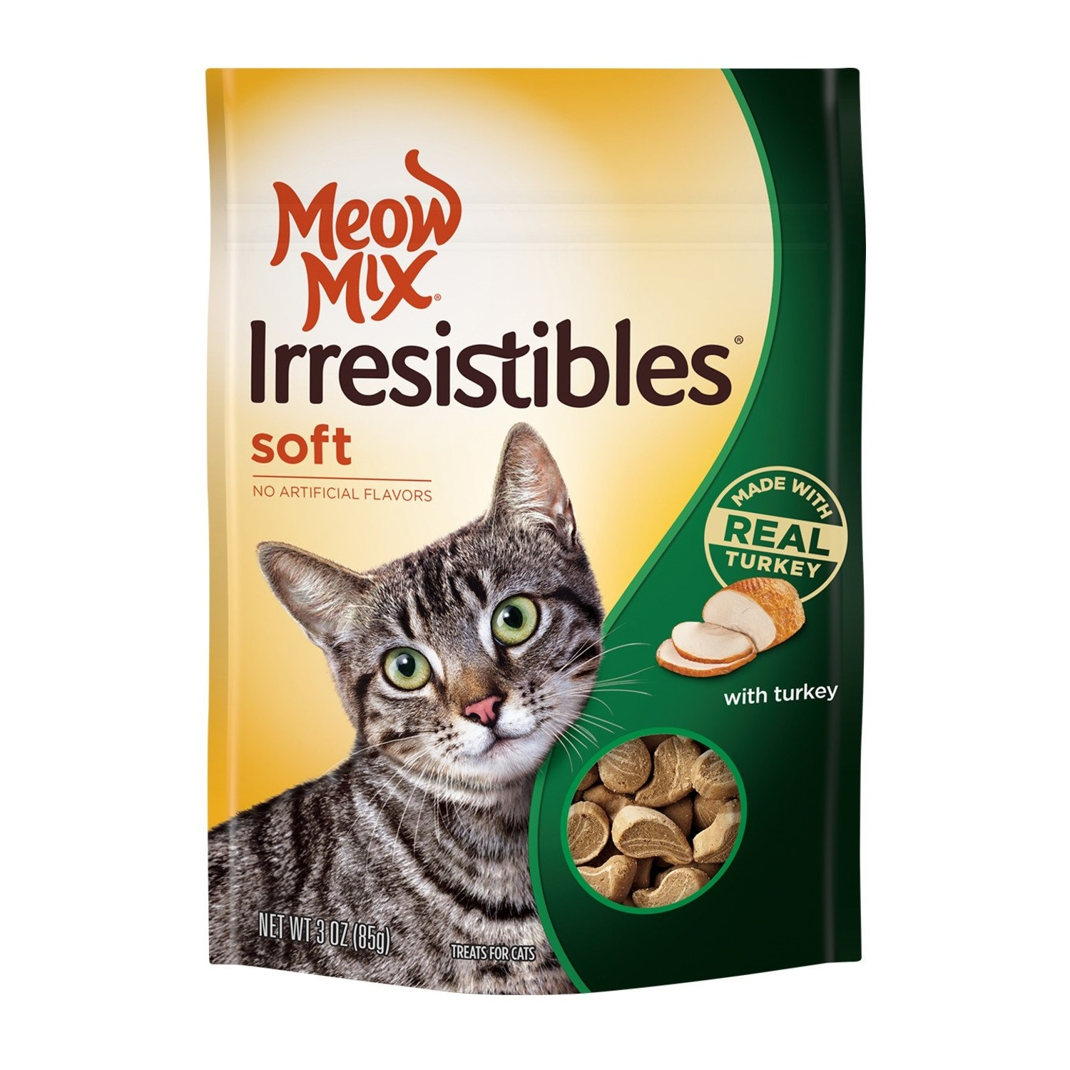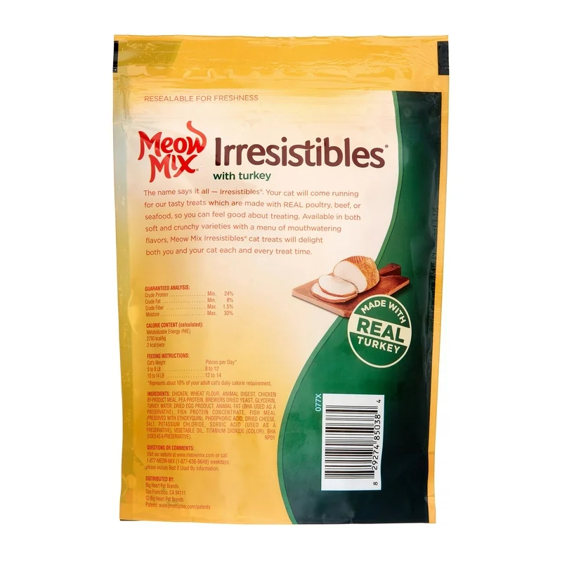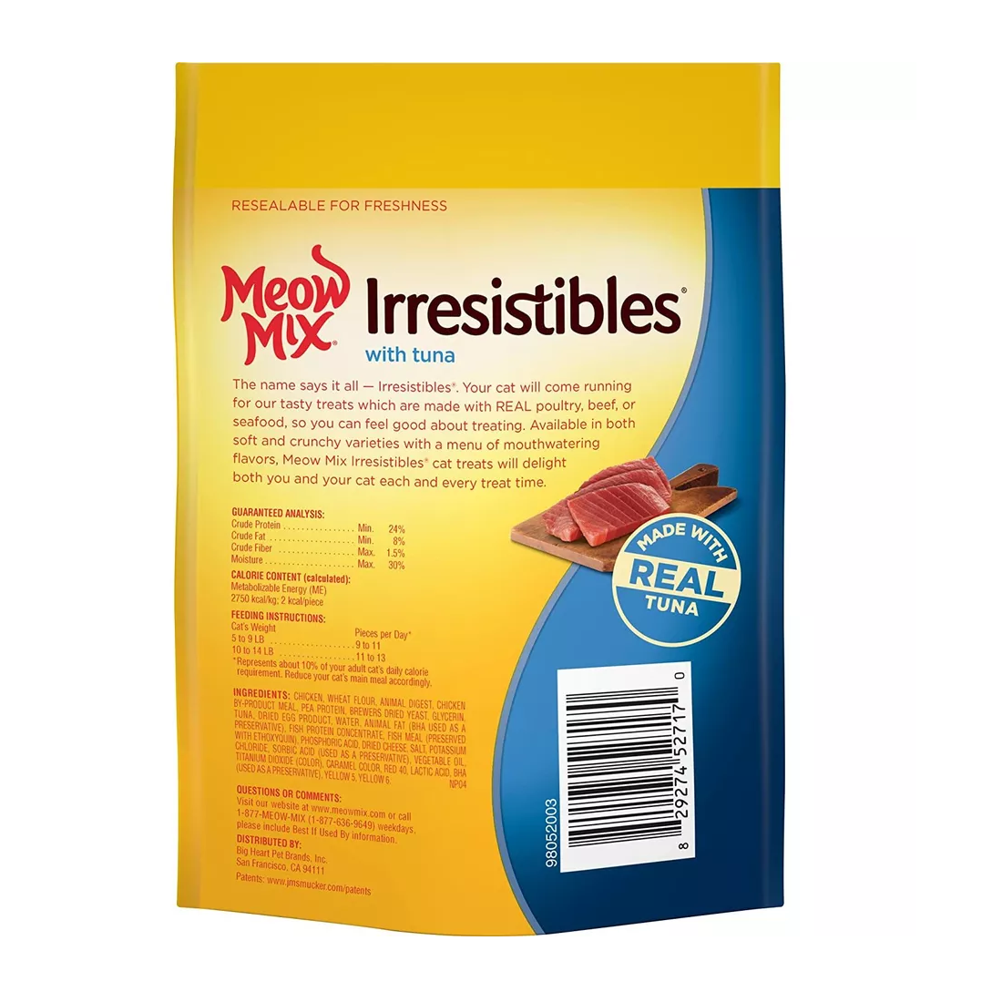 Ahora puedes estar más cerca de tu gato en cualquier momento con un sabroso y pequeño regalo! Meow Mix Irresistibles® está hecho con pollo REAL y sin sabores artificiales para que te sientas bien con el tratamiento. ¡Estas golosinas para gatos tienen un sabor delicioso y una textura suave que a tu gato le encantará, lo que las hace perfectas para compartir más momentos especiales juntos!