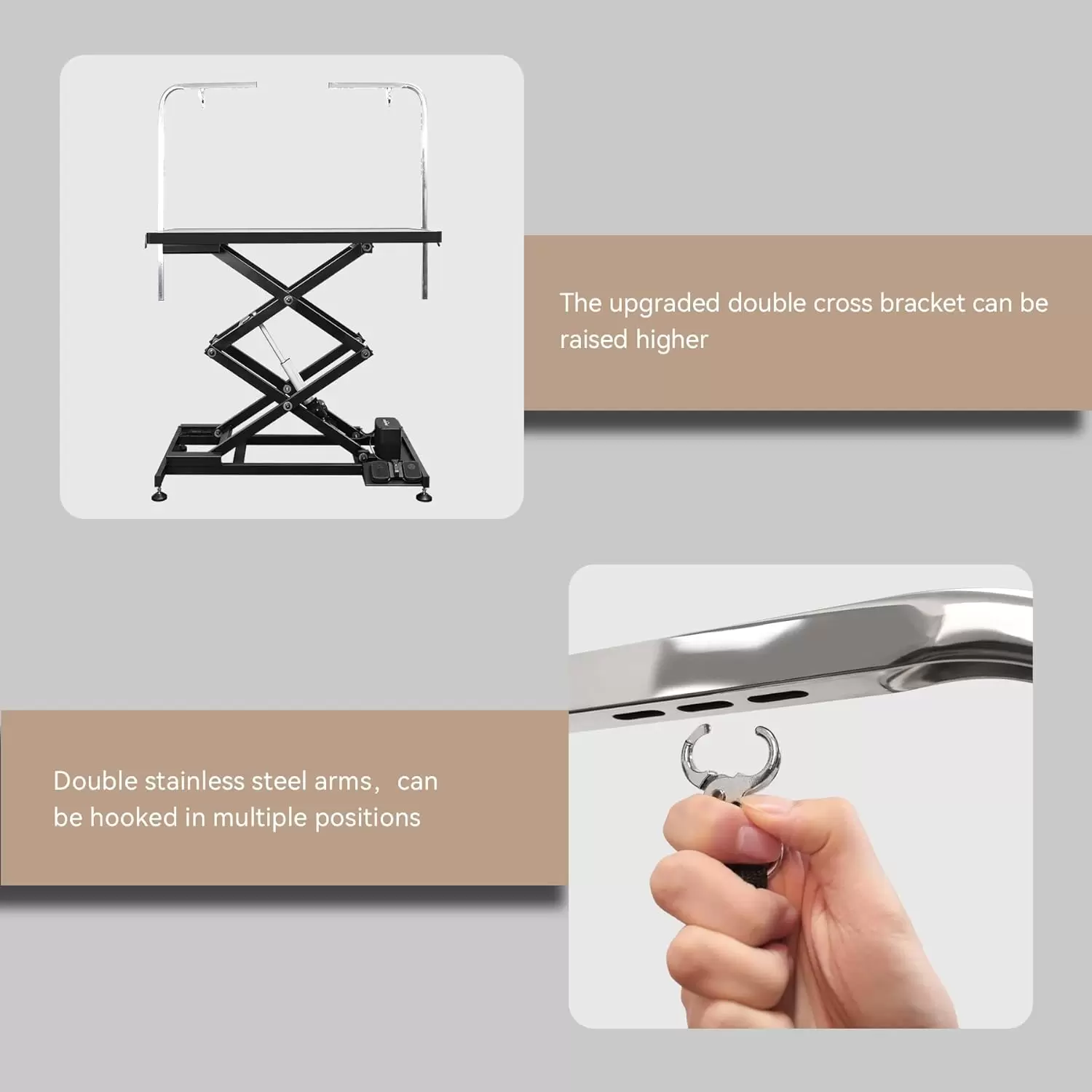 Brazo ajustable y lazo equipado: viene con brazo de aseo móvil y ajustable, puede ayudarte a mantener a la mascota en su lugar, mantener a las mascotas en posición para una sesión de aseo prolongada, conveniente para aseo, recortar, vestirse, secar y otros.