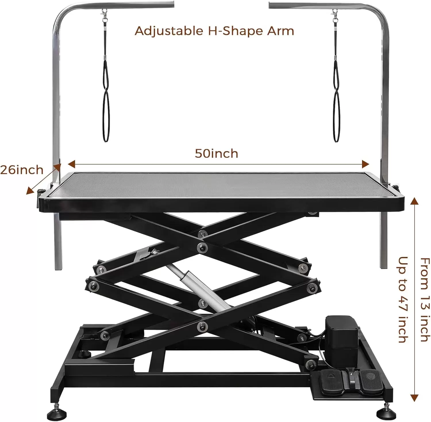 [Diseño eléctrico mejorado de doble elevación] Cuenta con un marco de acero resistente, puede soportar mascotas de hasta 165 libras. El color negro del producto es más texturizado. El elevador eléctrico puede hacer que la altura se ajuste de 13 a 47 pulgadas en segundos para satisfacer tus necesidades.