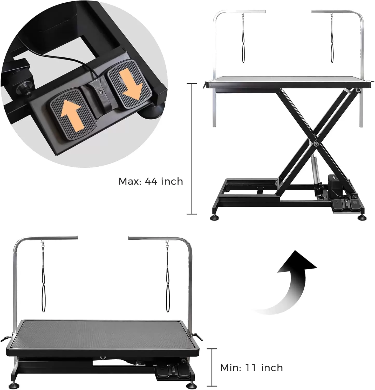 Diseño eléctrico X-Lift mejorado: cuenta con un marco de acero resistente, puede soportar mascotas de hasta 165 libras. El color negro del producto es más texturizado. El elevador eléctrico puede hacer que la altura se ajuste de 10 a 43 pulgadas en segundos para satisfacer tus necesidades.