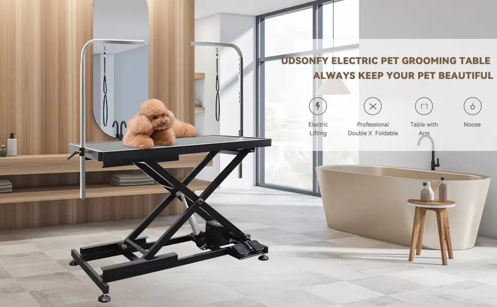 Mesa Eléctrica Profesional de Peluquería Canina 111x127x60 cm – Con Elevación Automática