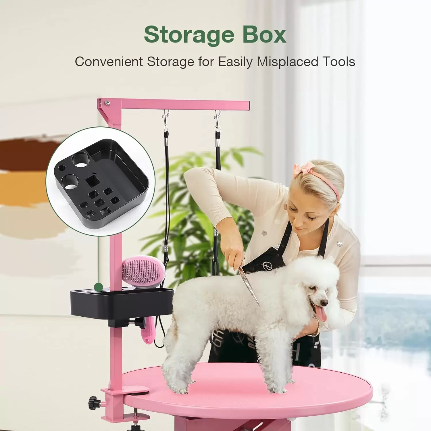 【Escritorio cómodo】Diseñado específicamente para perros pequeños, gatos u otras mascotas peludas pequeñas, esta mesa de aseo cuenta con un diámetro de 24 pulgadas que garantiza un espacio cómodo para tu mascota durante las sesiones de aseo.