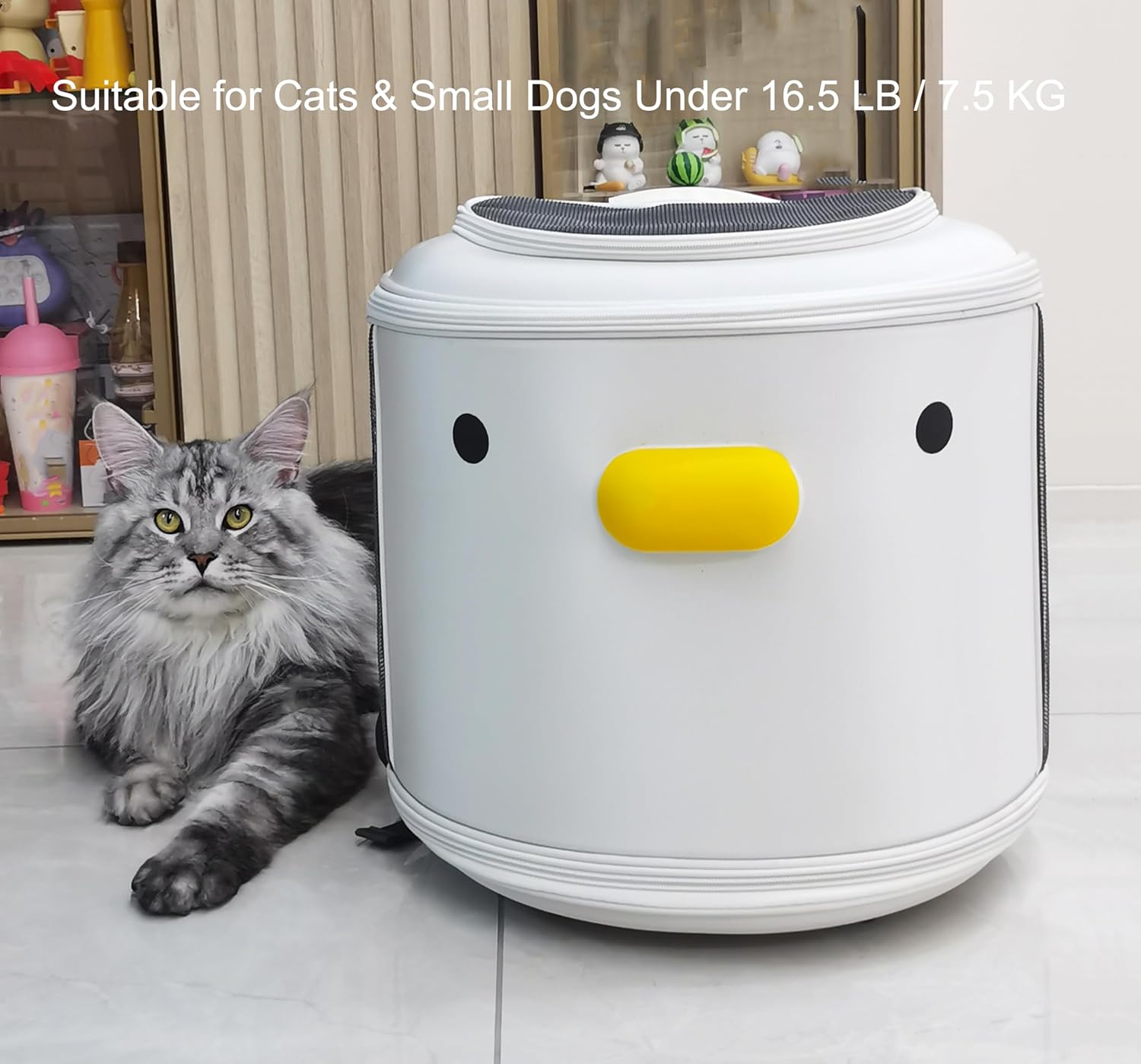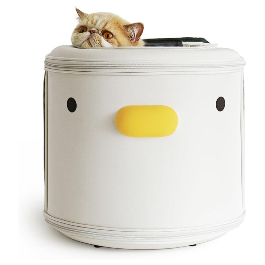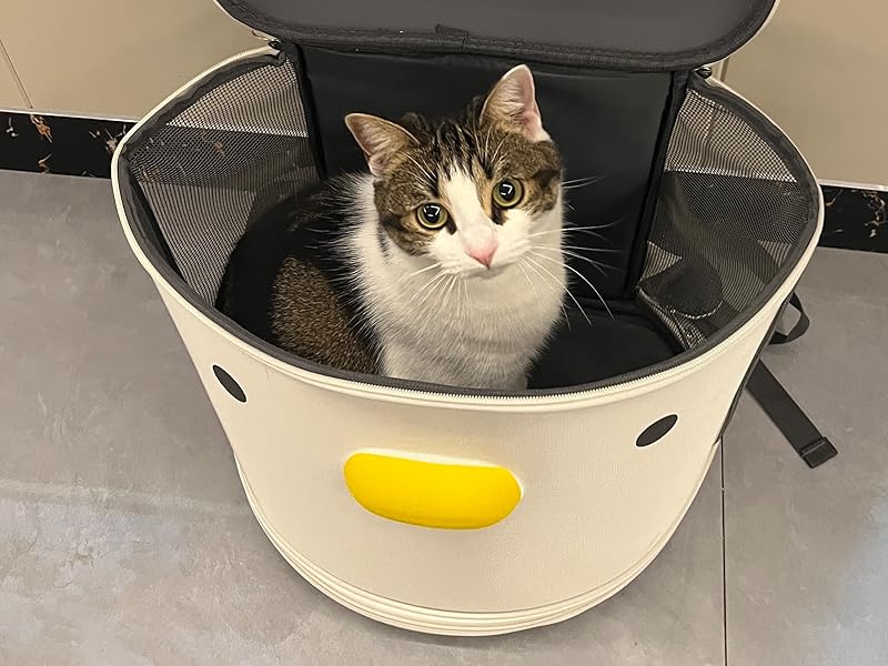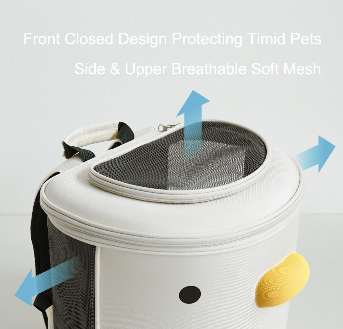 Diseño cerrado delantero: la parte delantera de la mochila cuenta con una bonita forma de pato y un diseño cerrado, protegiendo eficazmente a las mascotas tímidas y reduciendo la ansiedad de las mascotas. El lateral y la parte superior están equipados con grandes redes transpirables, asegurando suficiente aire para gatos y perros pequeños.