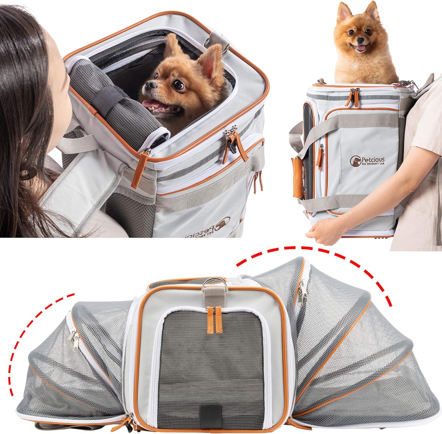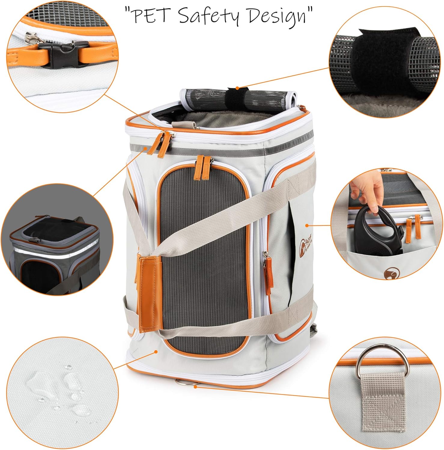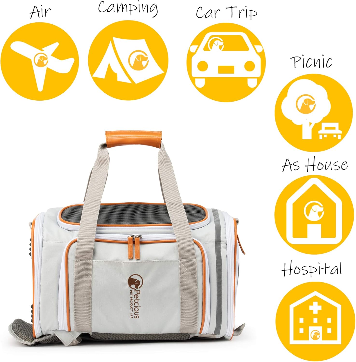 Mochila transportadora para mascotas aprobada por aerolíneas Petcious debajo del asiento diseñada Plus, “99% garantía sin riesgos”. Las mochilas Petcious suaves y expandibles de viaje están respaldadas por nuestro fabricante 30 días, garantía de devolución de dinero con una garantía adicional de reemplazo gratuito de 30 días. Siéntete a gusto al llevar esta bolsa contigo cuando estás al aire libre, viajas en coche de avión, camping durante la noche, senderismo o simplemente vas a un parque. Pruébalo ahora