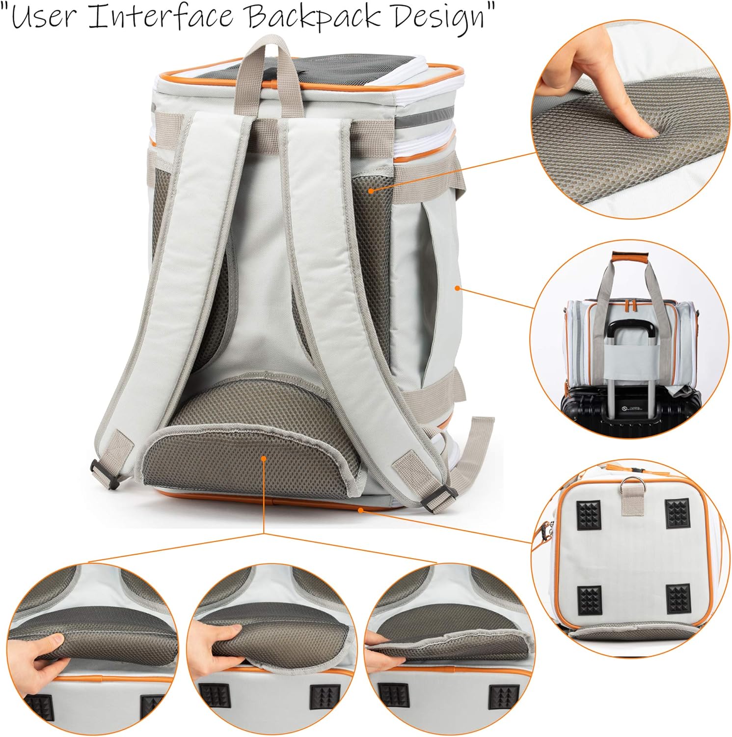 “Diseño ergonómico de comodidad” Imagina acostarte en un espacio cerrado donde ni siquiera puedes levantar la cabeza durante horas. ¿Puedes imaginar lo frustrante que sería? Al igual que en este ejemplo, una pequeña cantidad de espacio para la cabeza puede causar mucho estrés en tu perro. La mochila transportadora para mascotas PETCIOUS está creada con un diseño ergonómico y cómodo. Garantizamos una altura de 12 pulgadas para espacio de cabeza cuando se despliega. Creemos que crear este espacio para la cabeza provocará alivio del estrés, así como protección de la columna vertebral y las articulaciones tanto para perros como para gatos.