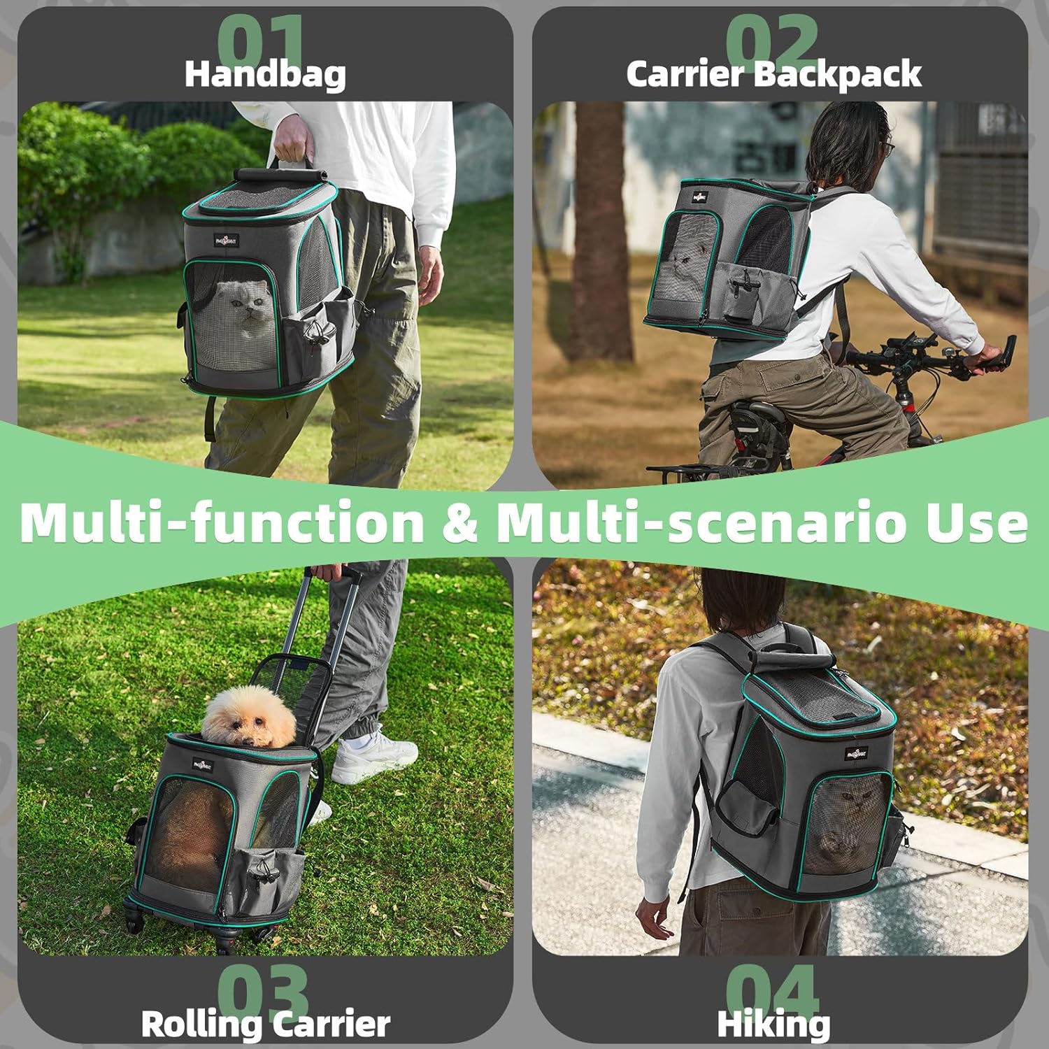 Versatilidad en su mejor momento: el diseño multifunción de este transportador de viaje para perros redefine la comodidad. Transformarás sin esfuerzo de mochila transportadora para perros, a bolsa transportada a mano, a transportador rodante o incluso un asiento de automóvil. Esta característica única del transportador para perros con ruedas permite a los dueños de mascotas adaptarse a varios escenarios, proporcionando una solución integral para compras, viajes y actividades al aire libre.