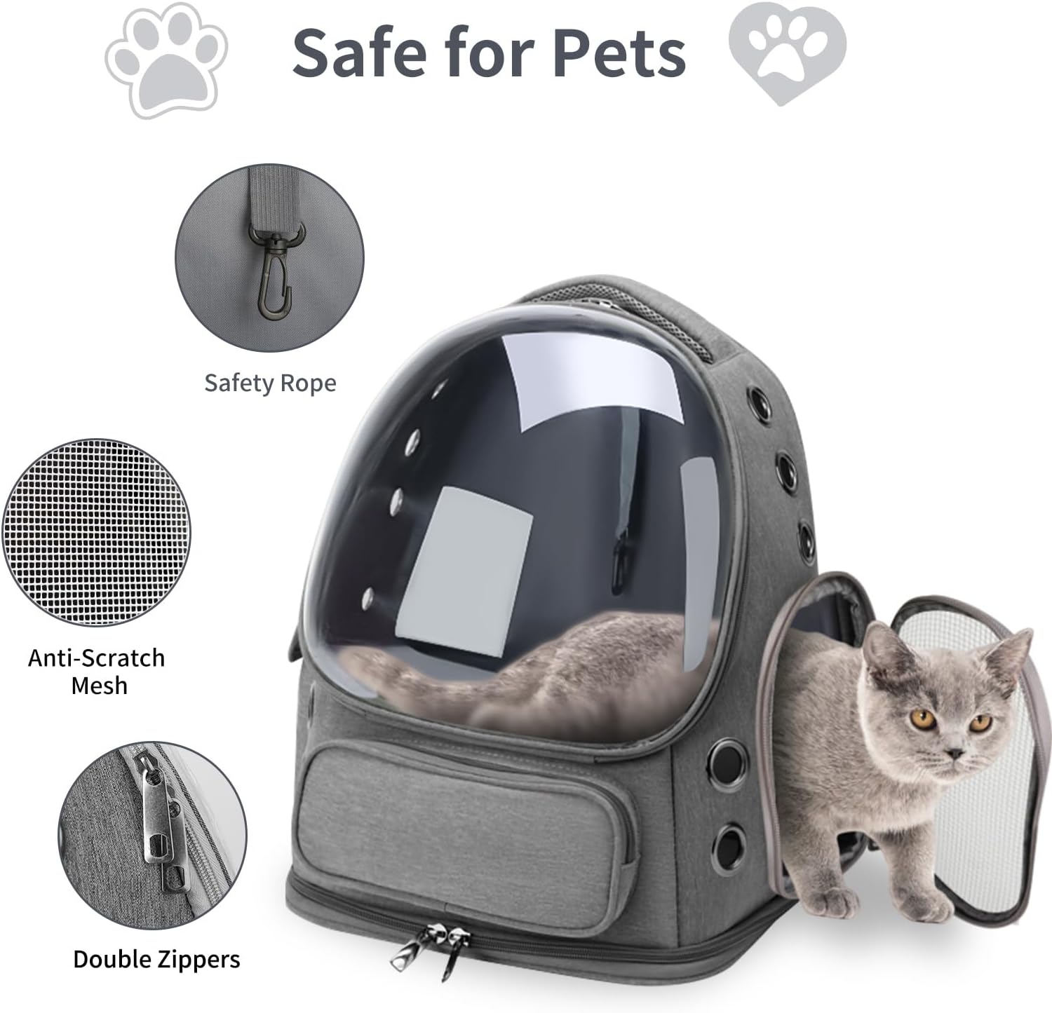 Aspecto de la cápsula: El diseño único y popular de la cápsula permite que su mascota se sienta más segura, más cómoda y evite reacciones de estrés mientras tiene una visión más amplia del exterior.