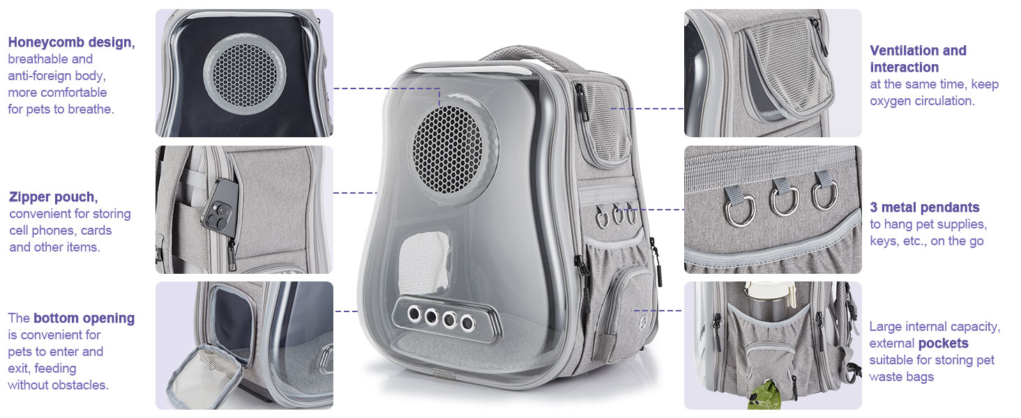 Duradero y cómodo: esta mochila transportadora para gatos está hecha de tela Oxford 600D resistente con un forro impermeable. Las correas acolchadas y una hebilla en el pecho garantizan comodidad y estabilidad durante el uso.