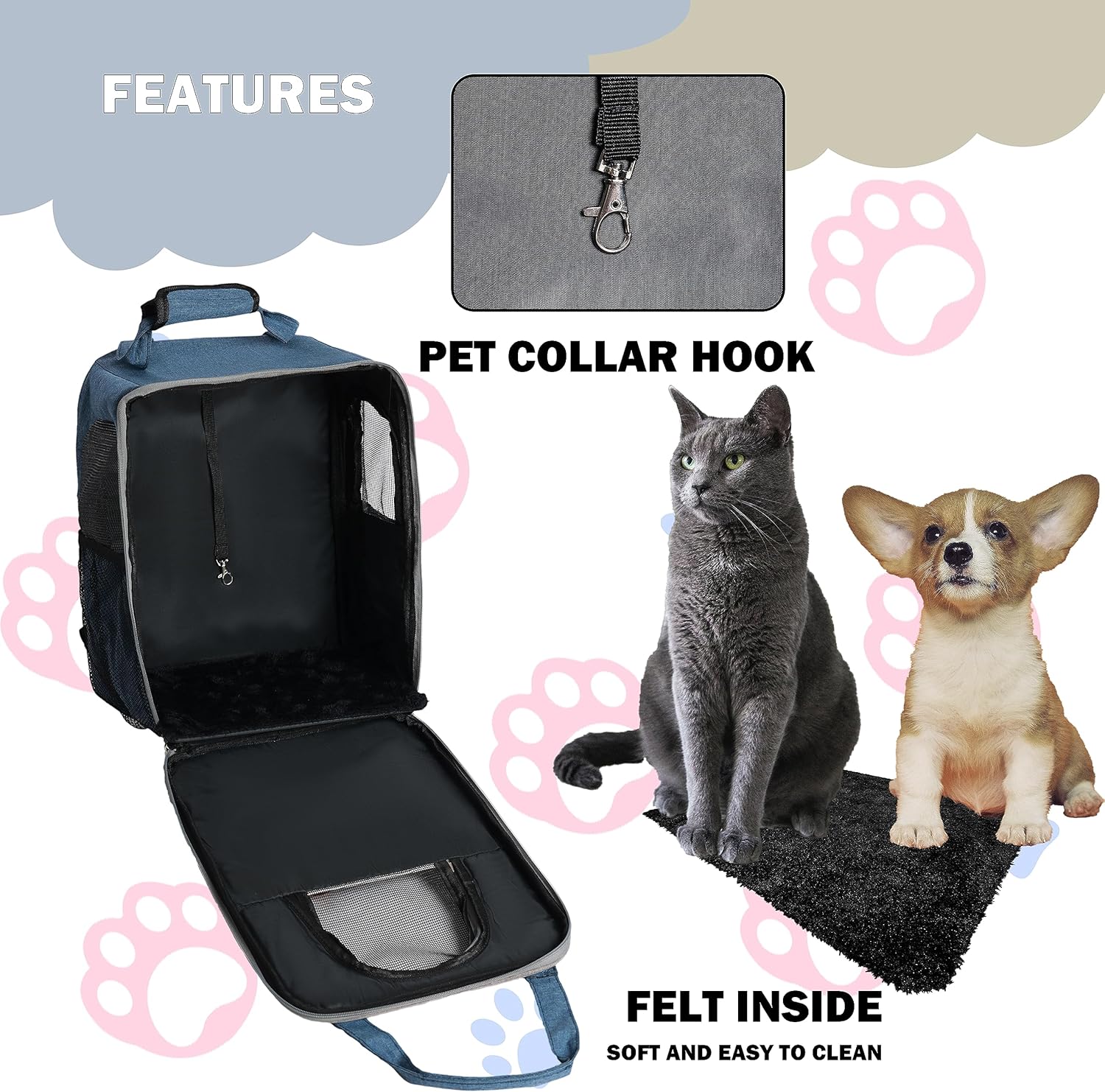 Viaje cómodo y seguro para mascotas: nuestra mochila transportadora para mascotas ofrece un medio seguro y acogedor para transportar a tu querido compañero animal. Con correas acolchadas para los hombros y excelente ventilación, garantiza el bienestar de tu mascota mientras mantiene su seguridad durante viajes o viajes.
