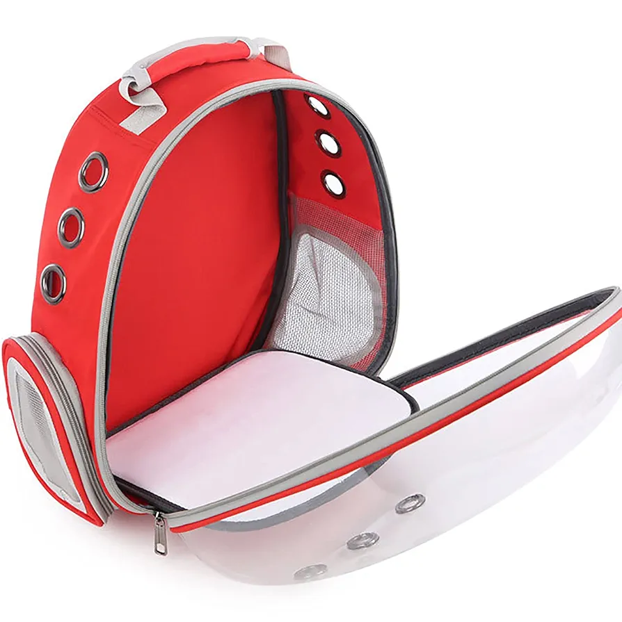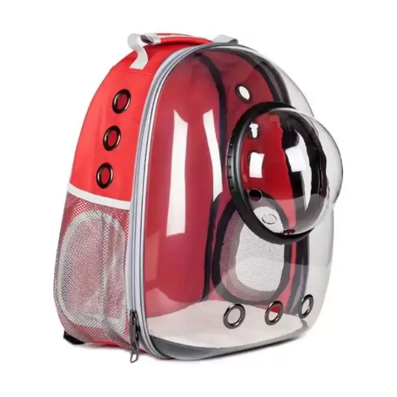 Características destacadas: Incluye una ventana panorámica (burbuja) que permite a la mascota observar el exterior y ventilación para asegurar la circulación del aire.