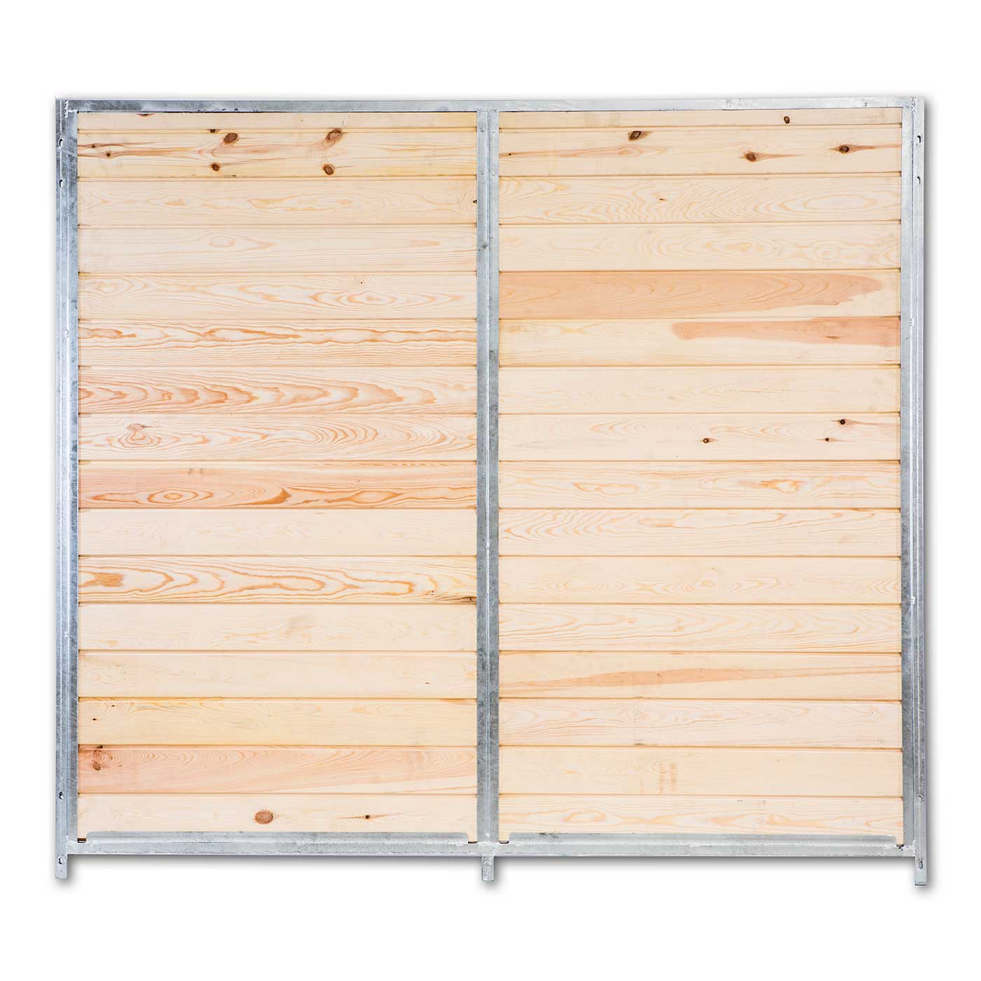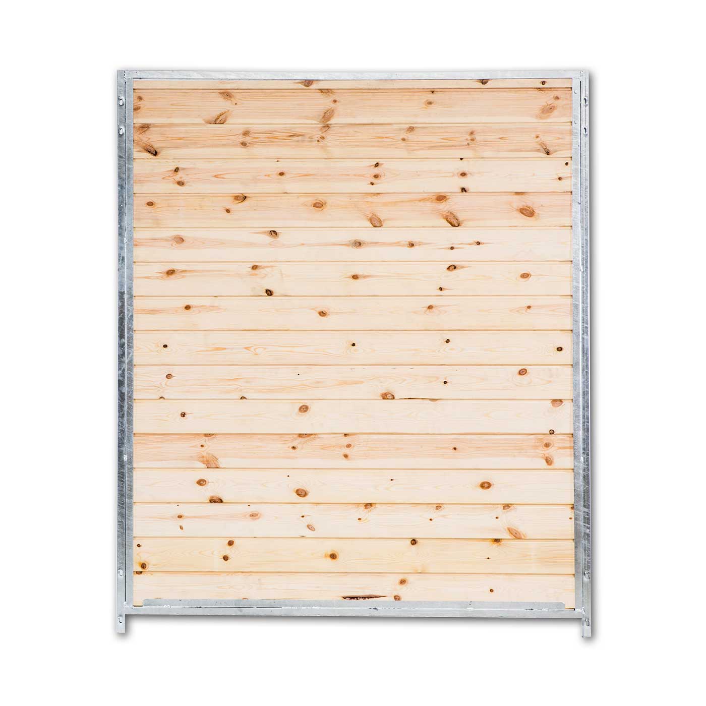 Panel modular compuesto por cerco de tubo 25/25 y madera con espesor de 22 mm, tratada en auto-clave R4. Material galvanizado en caliente para evitar la corrosión y la oxidación. Posibilidad de unión lateral y transversal mediante agujeros oblongos, para librar desniveles.