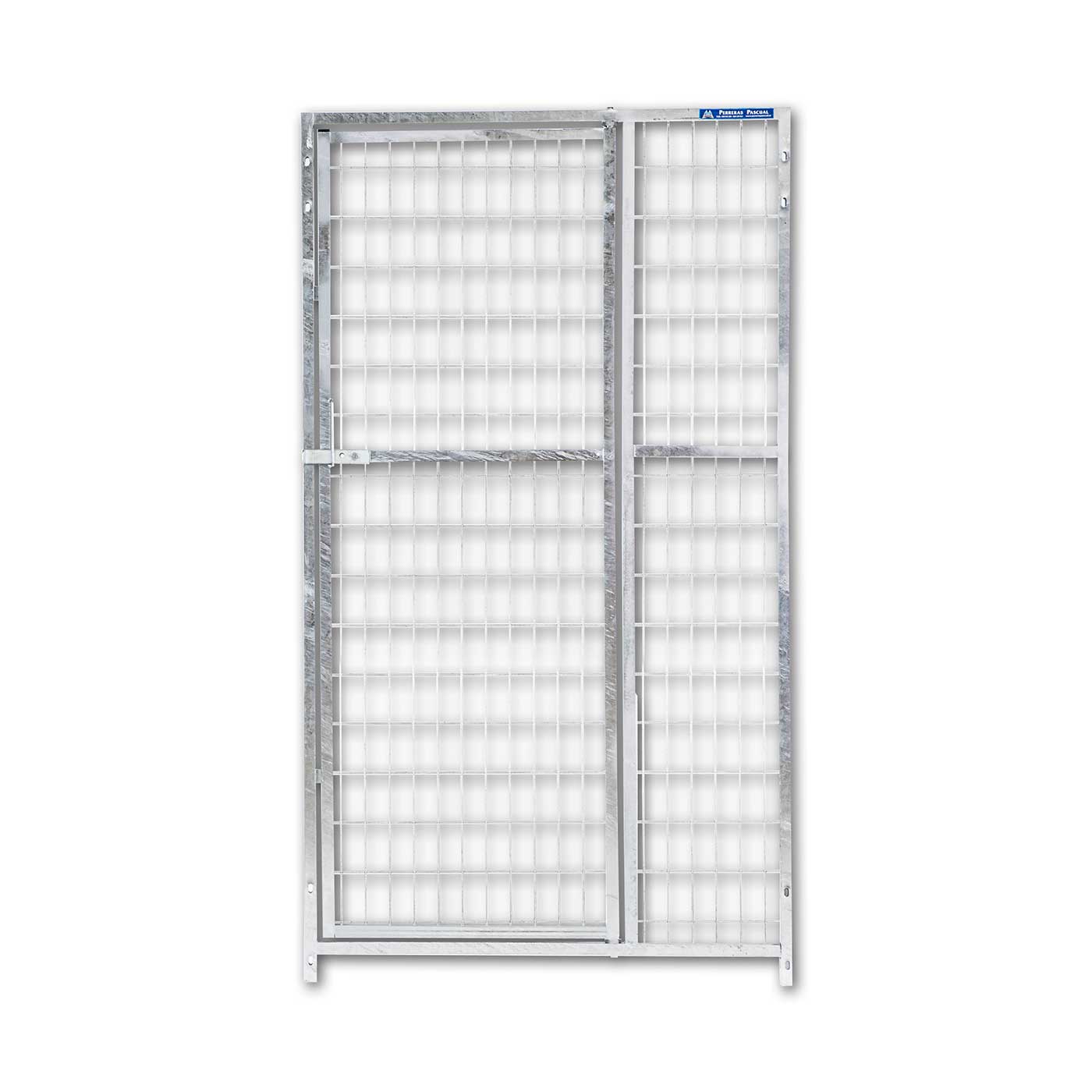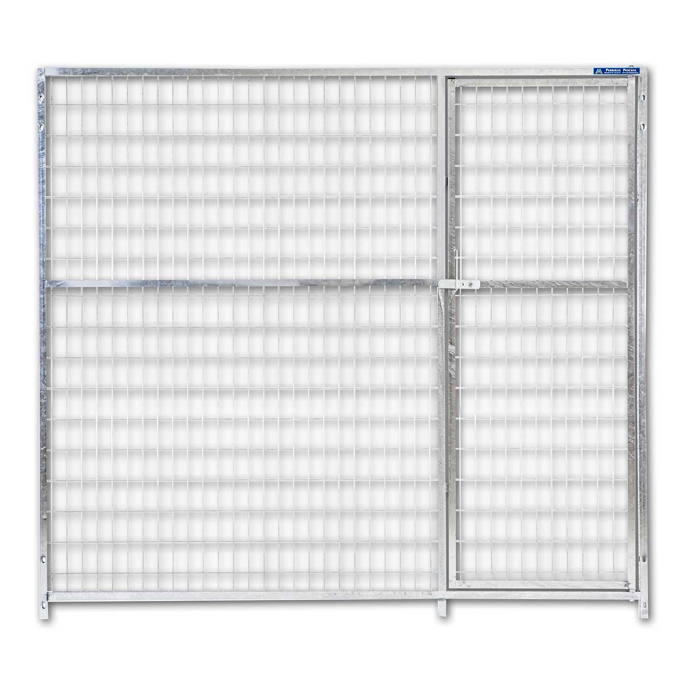 Panel modular compuesto por cerco de tubo 25/25 y mallazo 100/50/4, material galvanizado en caliente para evitar la corrosión y la oxidación. Posibilidad de unión lateral y transversal mediante agujeros oblongos, para librar desniveles.