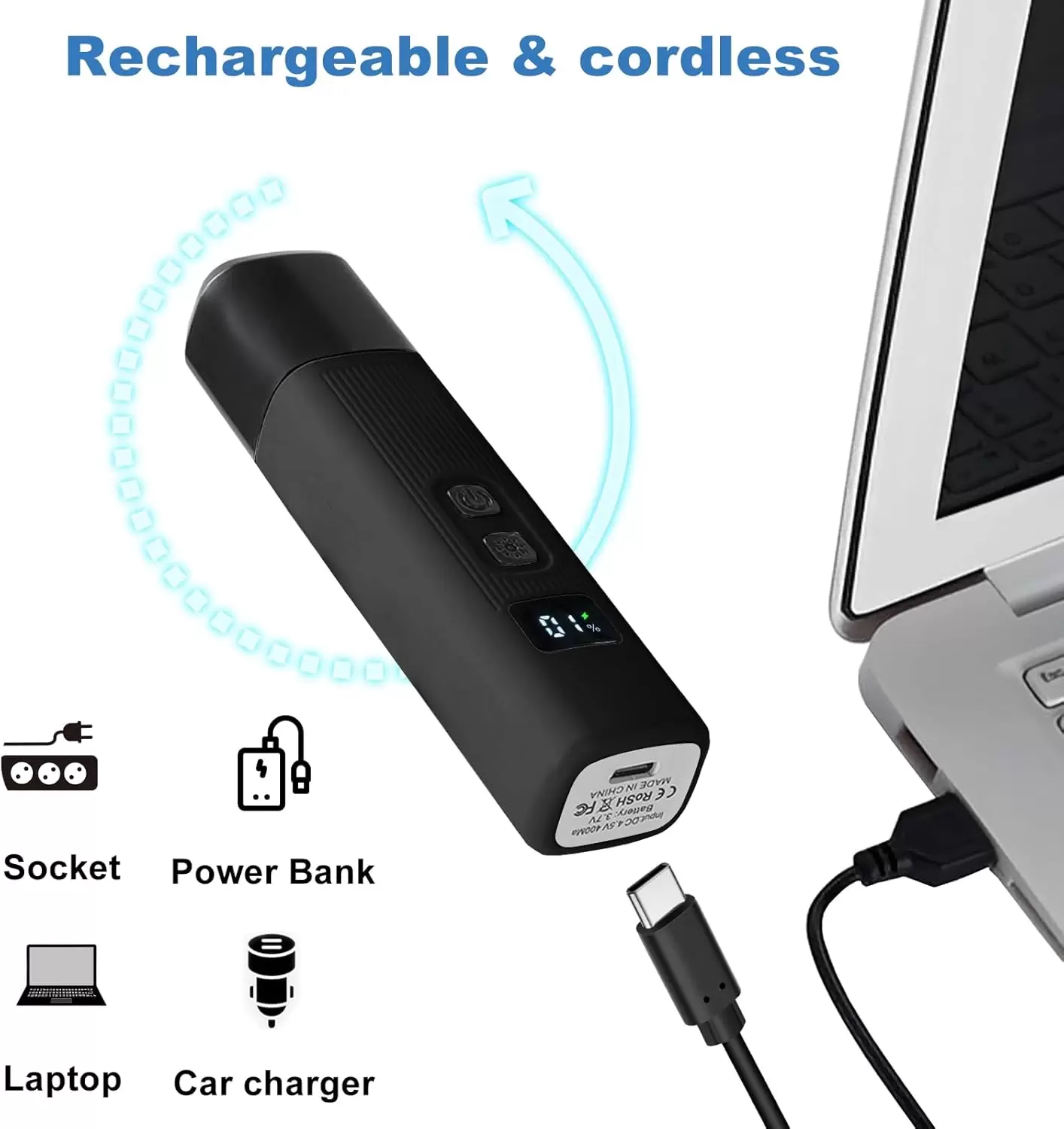 Recargable e inalámbrico: equipado con un cable USB que se puede conectar cómodamente a una toma de corriente, computadora portátil o tesoro de carga recargable para cargar. En cualquier momento y en cualquier lugar