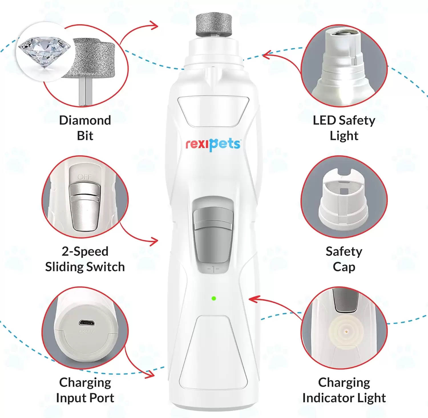 Cortauñas inalámbrico para perros: construido con un avanzado molinillo de diamante que ofrece un control y precisión superiores; diseño portátil y ligero.