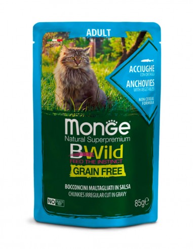 Esta Receta pertenece a la Gama Super Premium Bwild de la marca Italiana Monge. Ha sido formulada a partir de ingredientes 100% naturales: carne fresca de Anchoas combinada con judías verdes y zanahoria.