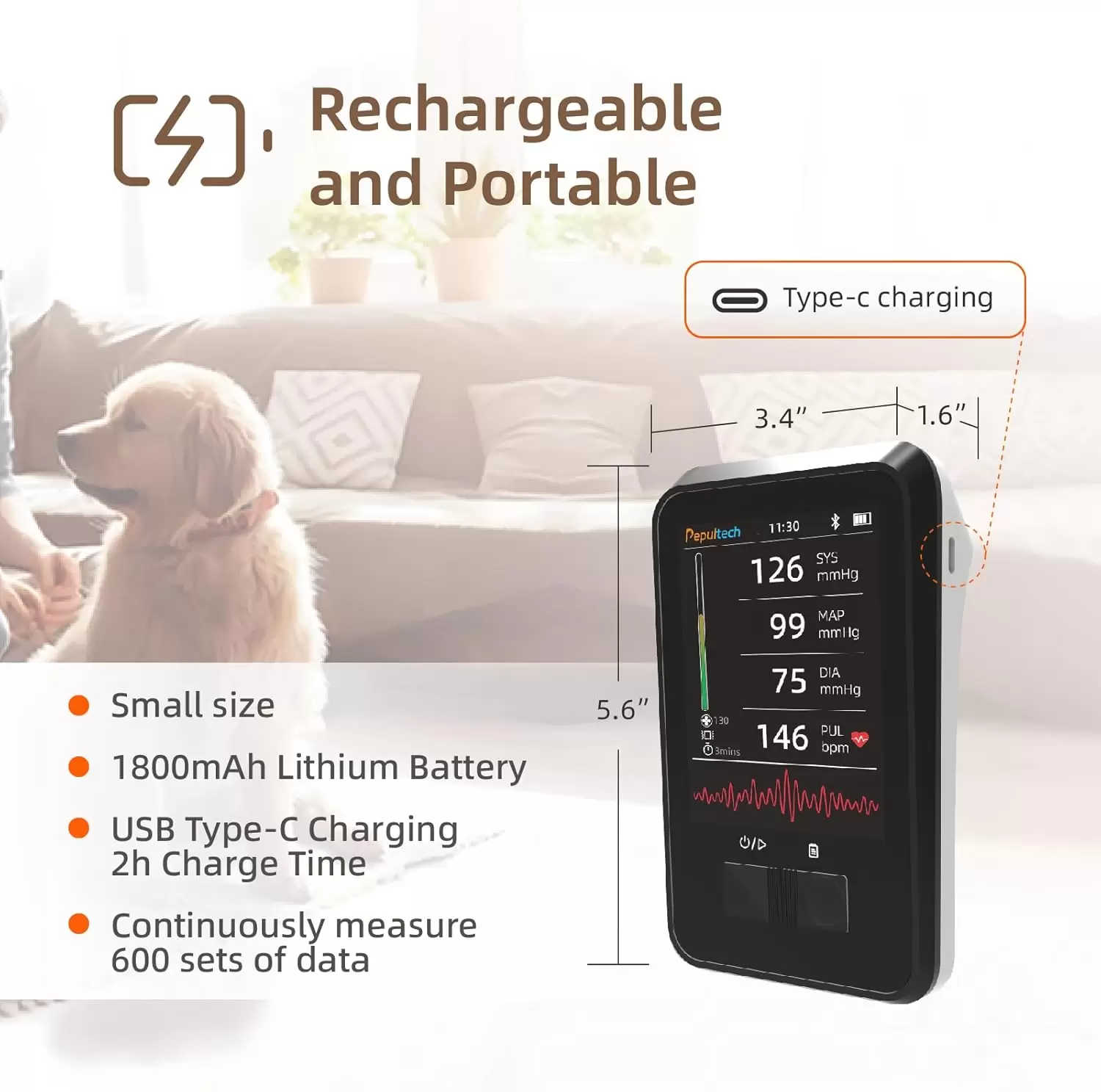 Monitor de presión arterial animal recargable: alimentado por una batería de litio de 1800 mAh (más de 8 horas de autonomía), este monitor ligero (10.58 oz) es ideal para veterinarios móviles. Su tamaño compacto cabe en cualquier kit médico, soportando diagnósticos sobre la marcha sin tomas de corriente