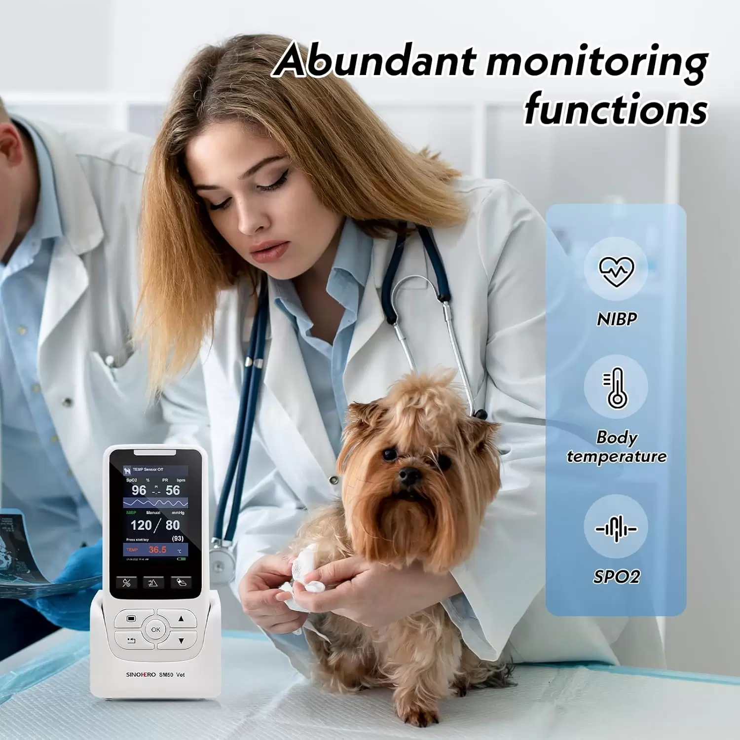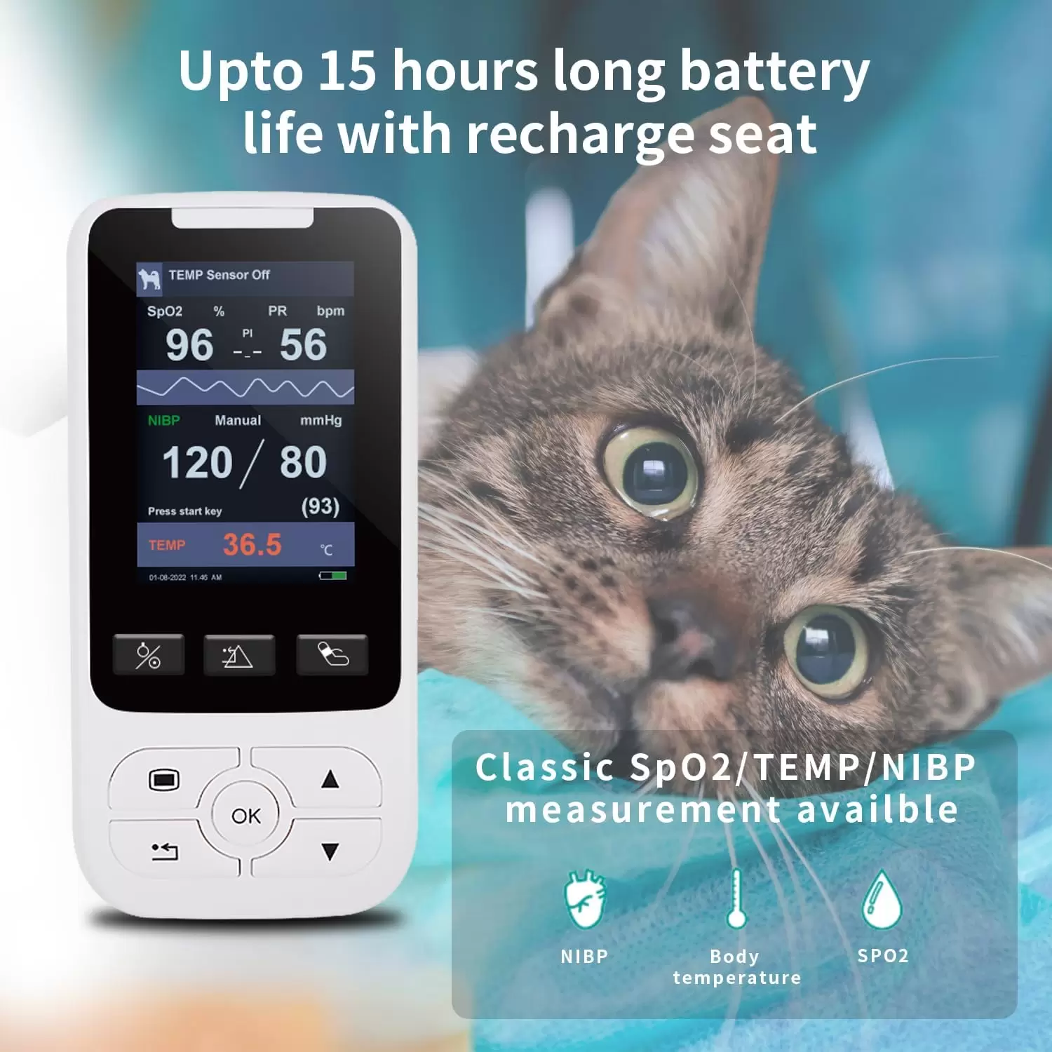 Monitor Multiparámetro Veterinario Portátil para Perros y Gatos | SpO2, NIBP, TEMP, PR
