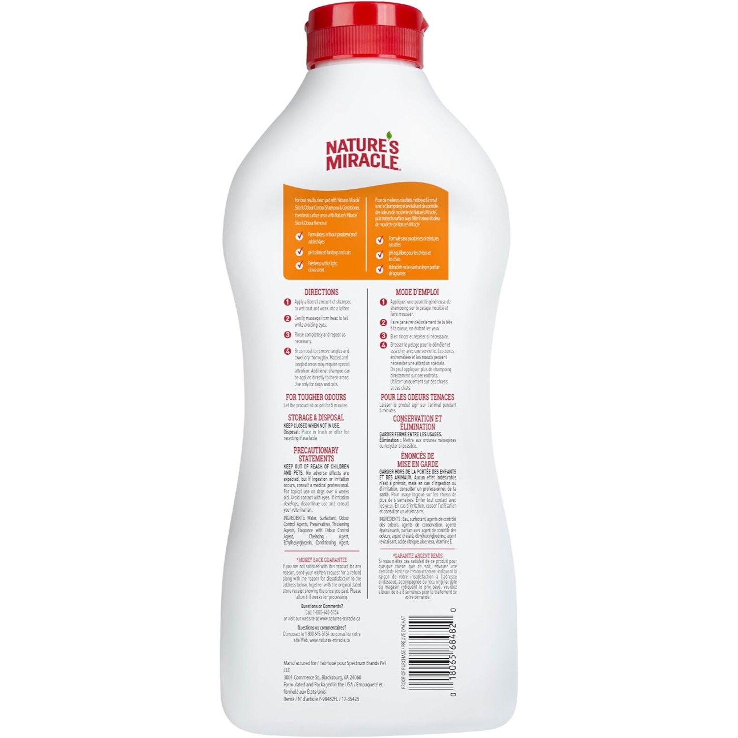 | Nombre de modelo | Nature’s Miracle Champú y acondicionador Skunk Odor Control |
