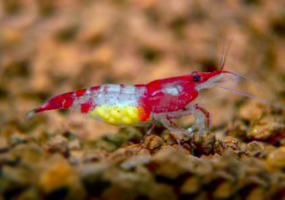 PEQUEÑA CARIDINA DE COLOR ROJO Y ALGO DE AMARILLO, LLAMADA COMUNMENTE CARIDINA CARDENAL TOWUTI, EXPECTACULAR.