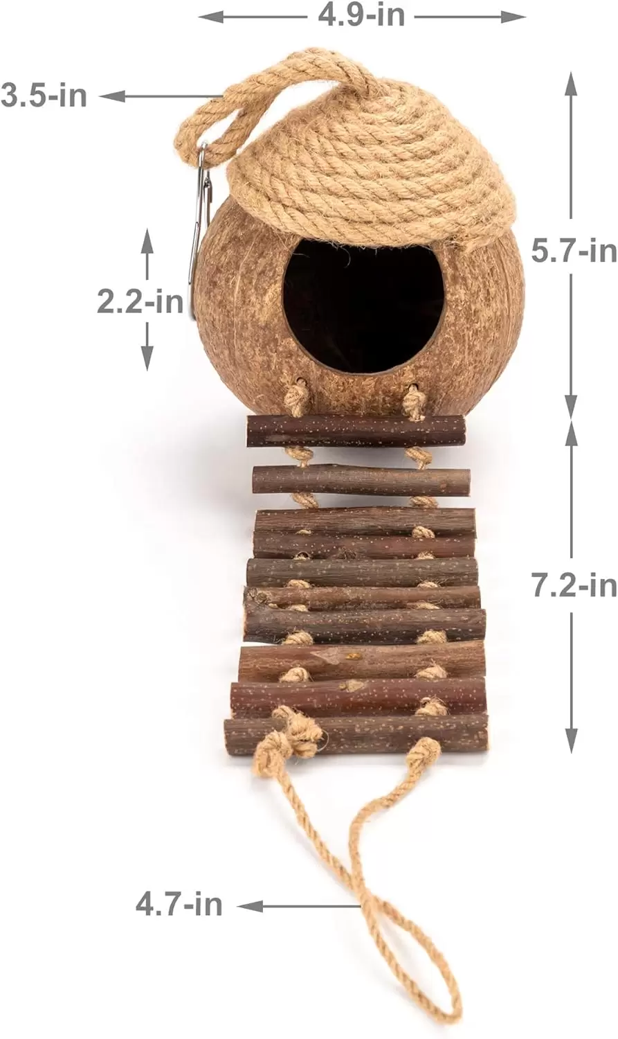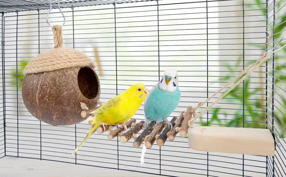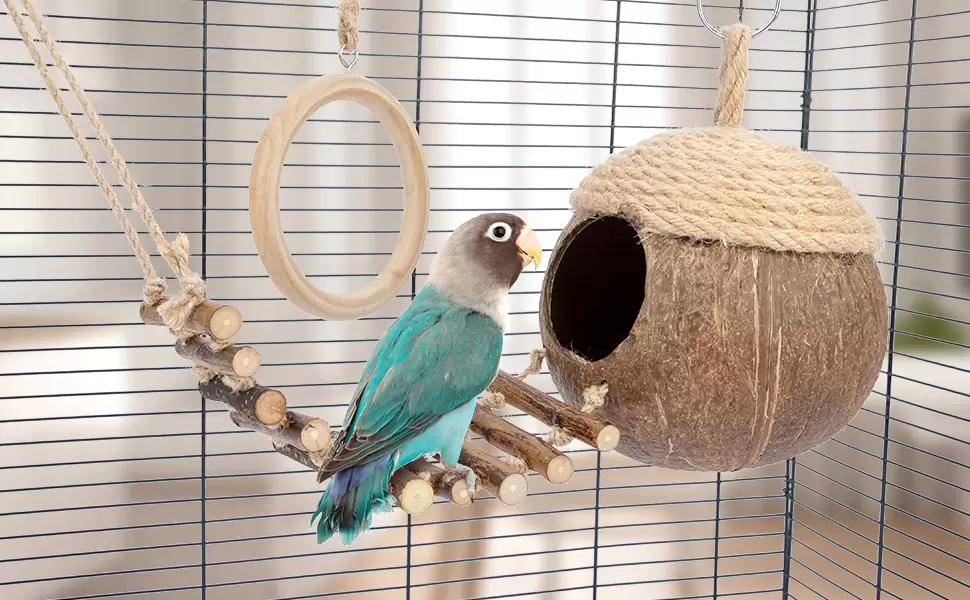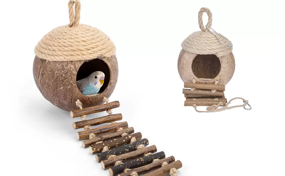 Nido y Juguete de Coco Natural con Escalera para Pájaros y Hámsters