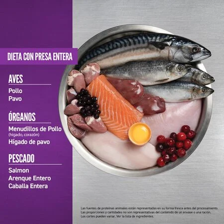 - Los 5 primeros ingredientes son ingredientes de aves y pescado frescos o crudos2.
