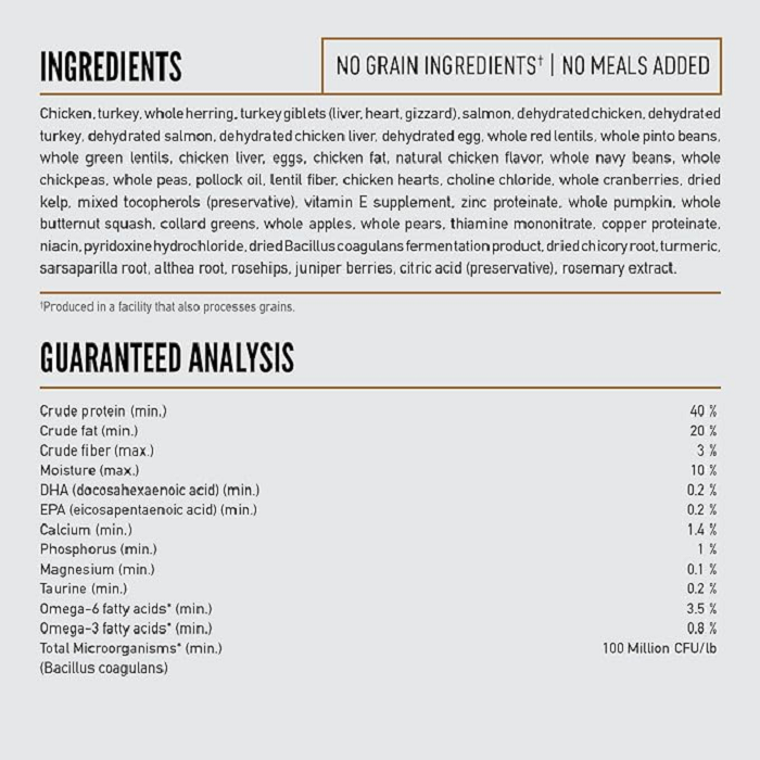 • Los primeros 5 ingredientes son 1 ave y 1 pescado frescos o crudos.