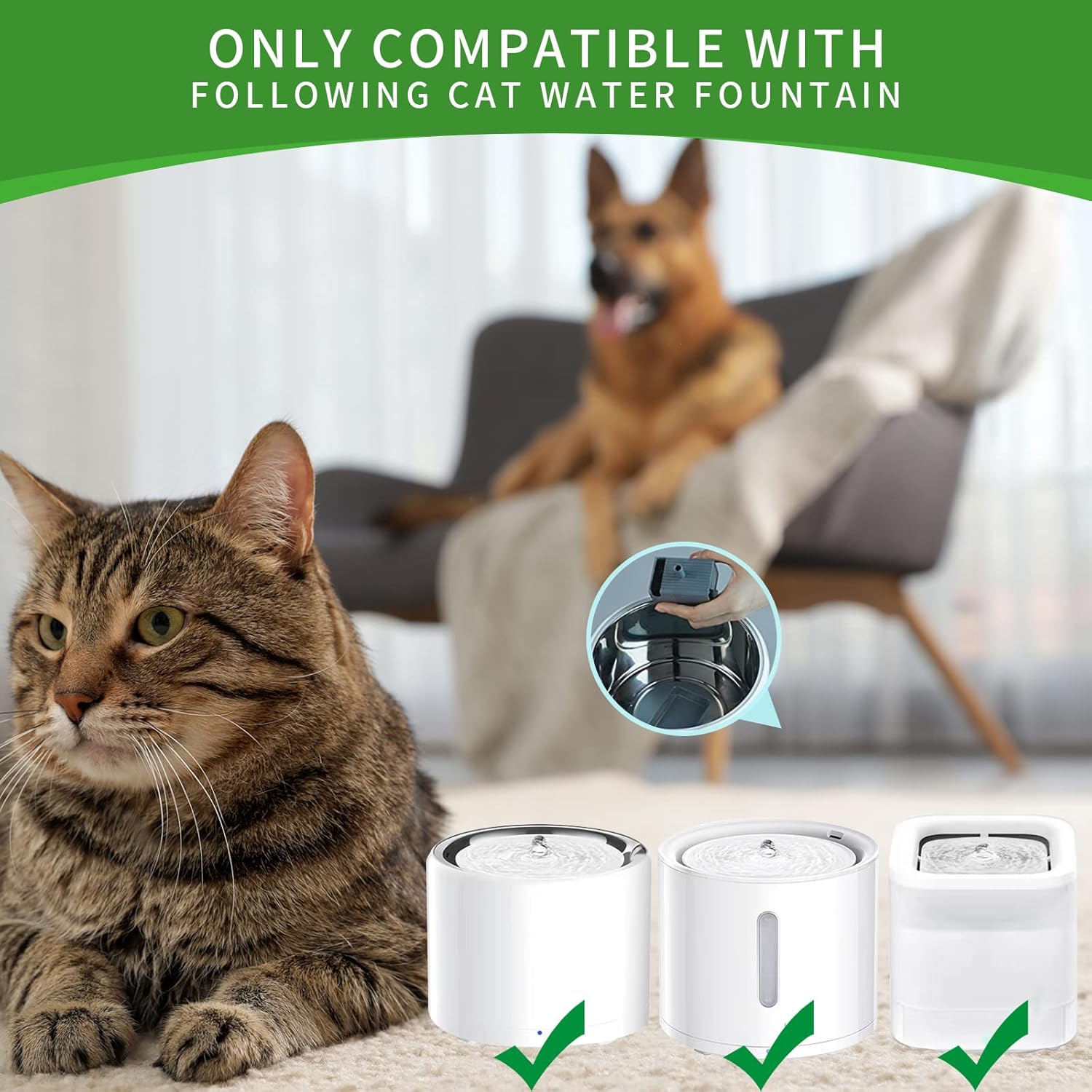 Alta densidad: puede filtrar mejor el cabello y evitar que los residuos de comida obstruyan la bomba. El suministro de agua limpia y fluida proporcionará a su mascota agua limpia y fresca, que es muy importante para su salud.