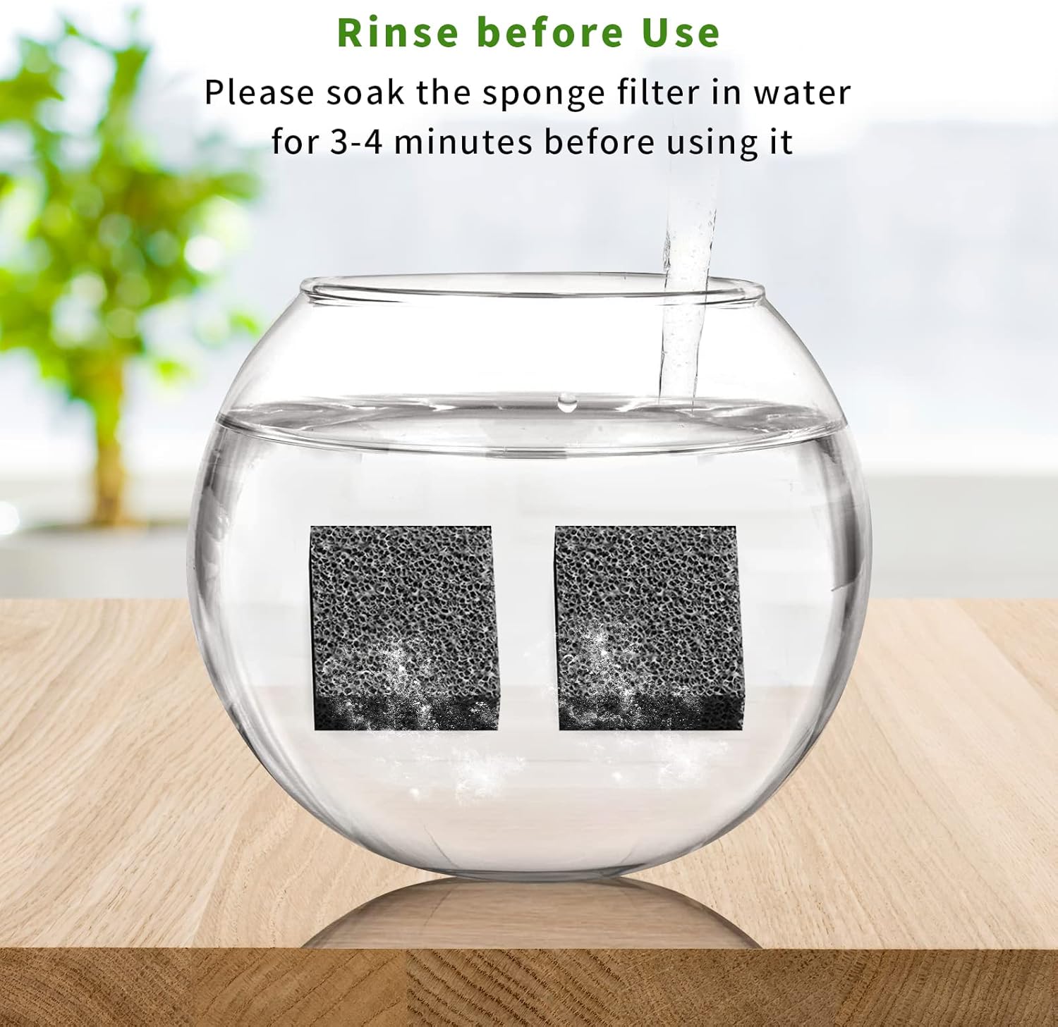 Enjuague antes de usar: remoje el filtro de espuma de la fuente de agua para gatos en agua durante 3-4 minutos antes de usarlo, y luego enjuague bien con agua corriente.