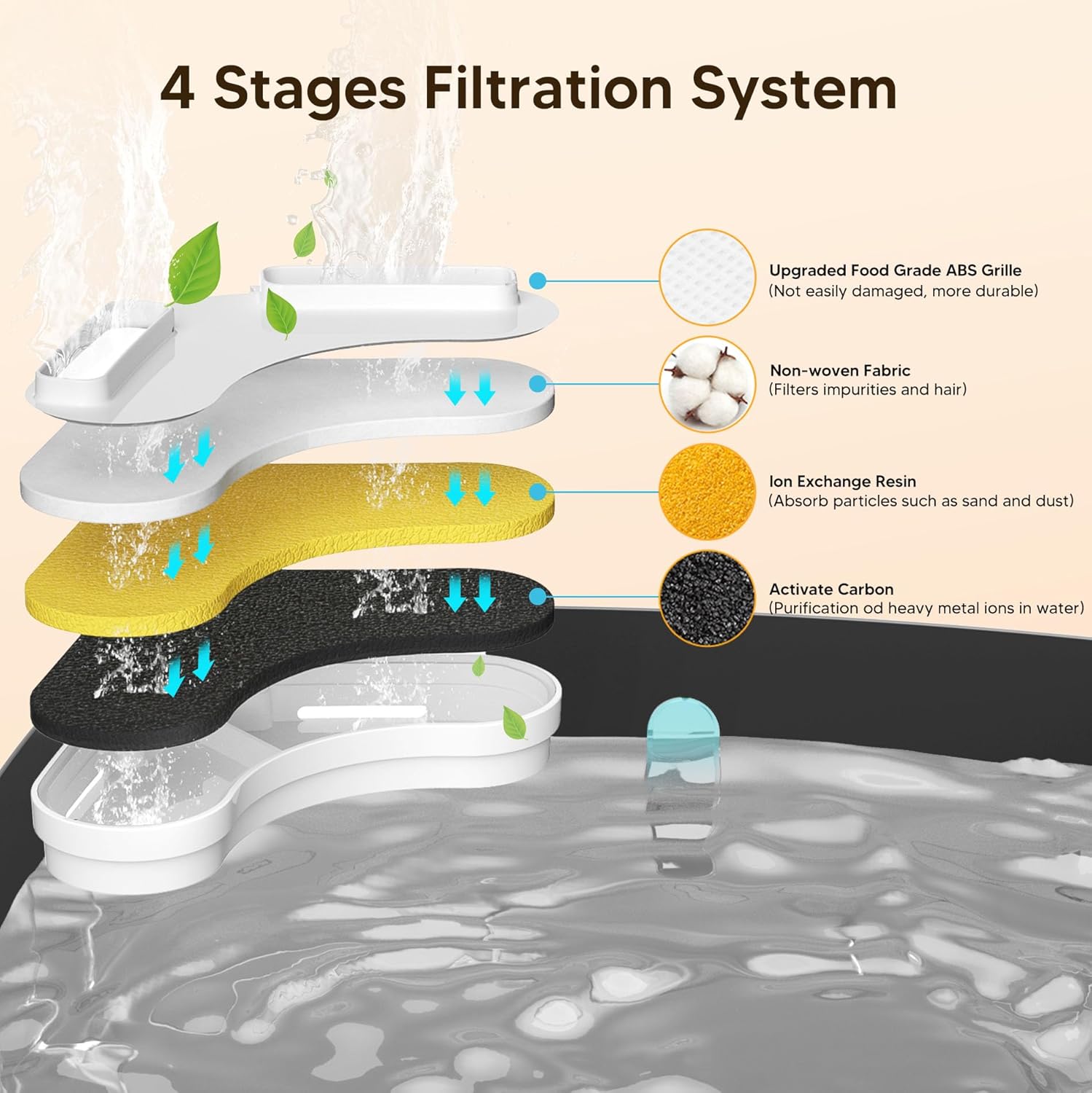 Filtración efectiva: el filtro ha añadido carbón activado con cáscara de coco para absorber los desechos en el agua y filtrar cualquier pelo de mascotas o partículas de alimentos.