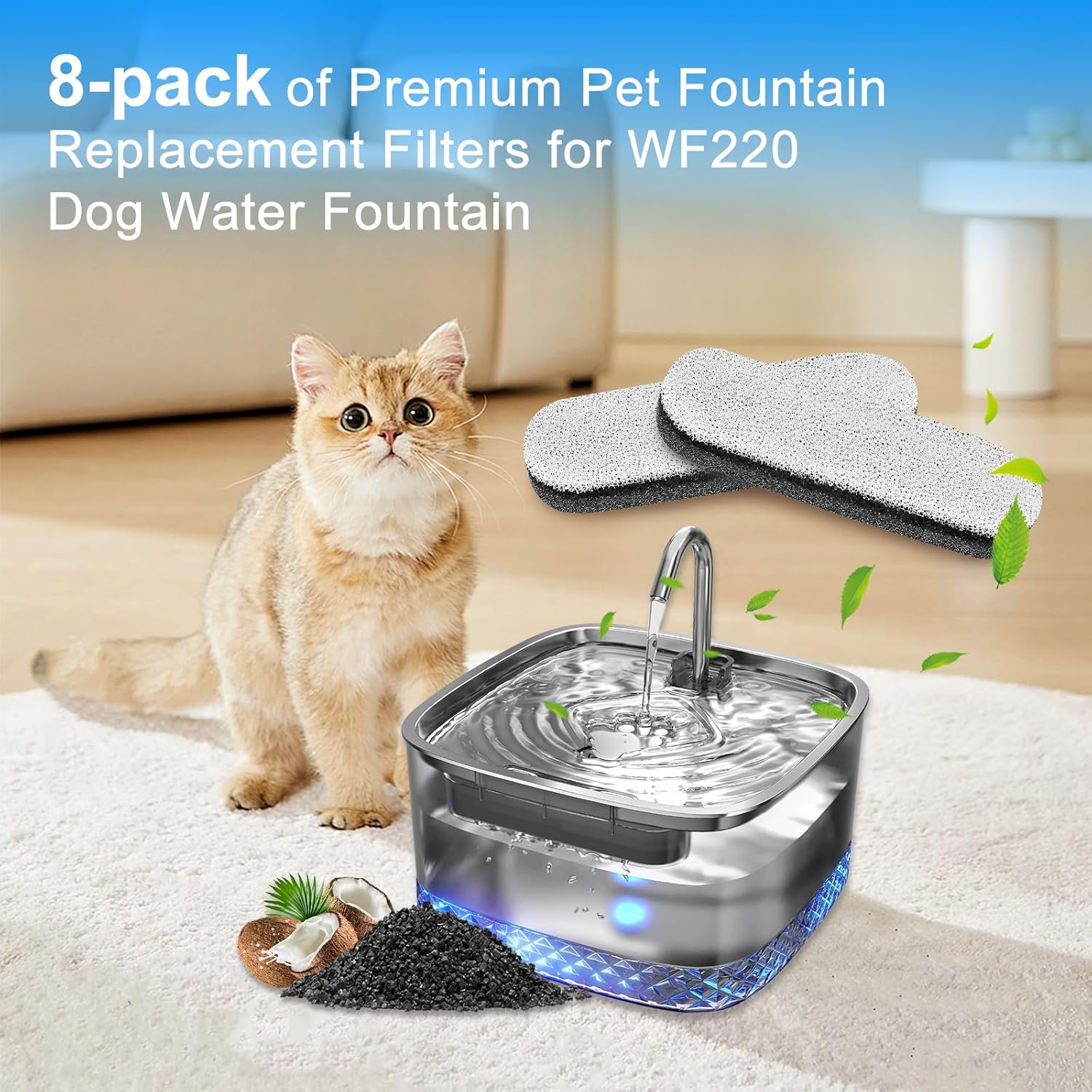 Paquete de 8 filtros de alta calidad: el paquete incluye un paquete de 8 filtros de repuesto de fuente de mascotas de alta calidad. Cada juego está empaquetado individualmente y sellado para mantener la alta calidad.