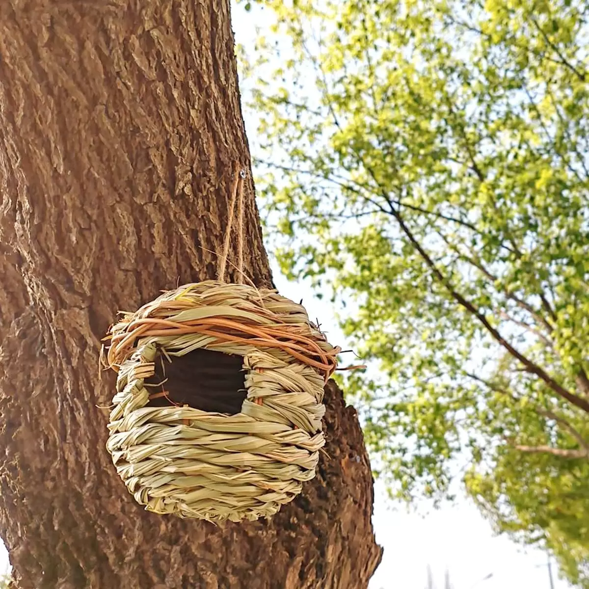 Con la fuerte cuerda de cáñamo, puedes colgar nuestra casa de pájaros gorrión de hierba en ramas de árboles, enredaderas o cercas para proporcionar un acogedor refugio cálido para pájaros pequeños. Nuestras grandes casas para pájaros para exteriores son duraderas ya sea al aire libre, alta temperatura, viento soplado, etc.