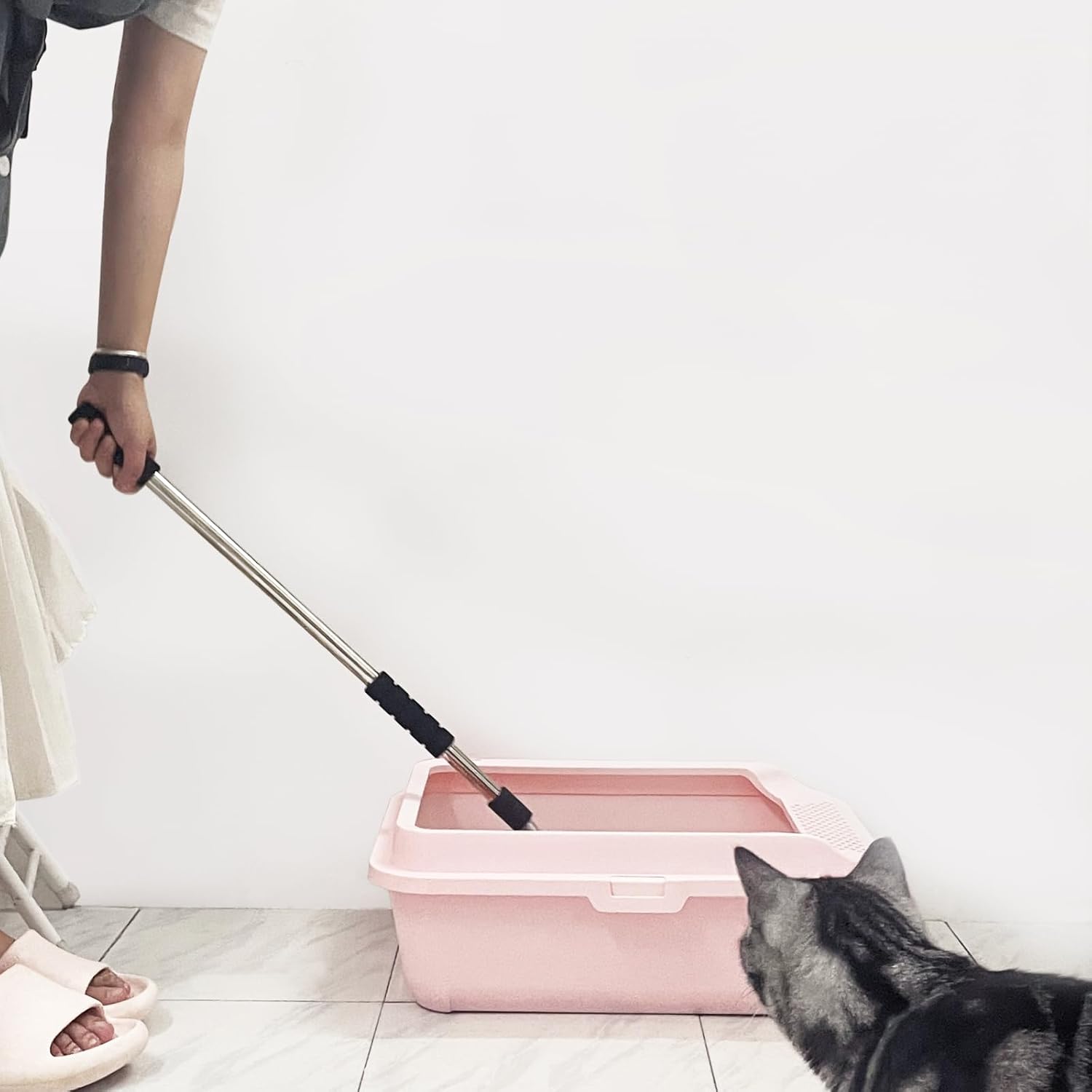Pala de Acero Inoxidable de Arena para Gatos con Mango Largo Ajustable