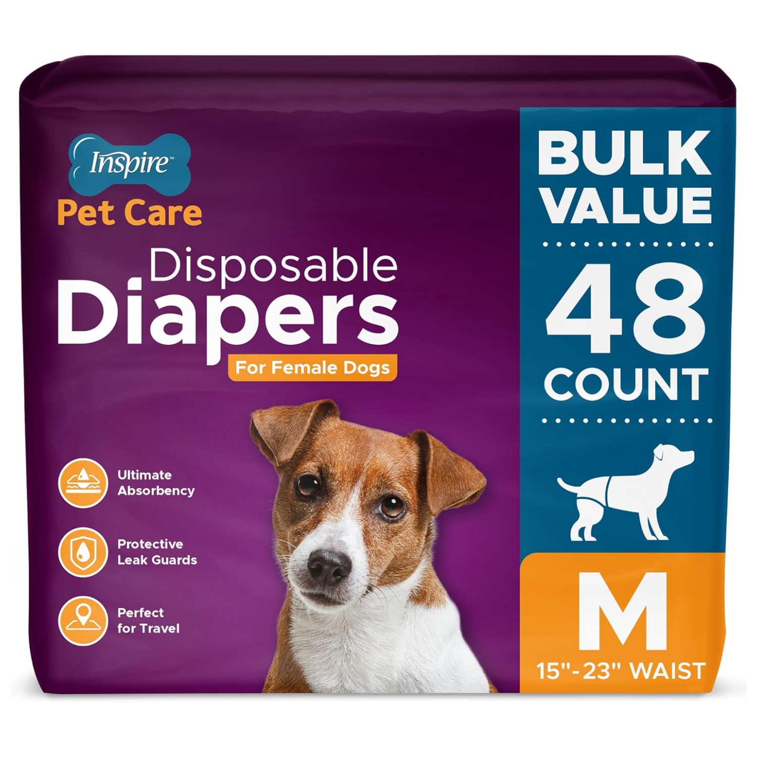 Paquete de valor a granel: obtén el mejor beneficio por tu dinero con estos pañales para perros Inspire Pet Care hembra, ofreciendo un generoso paquete de conteo perfecto para mantener un suministro constante de pañales para perritos para perras.