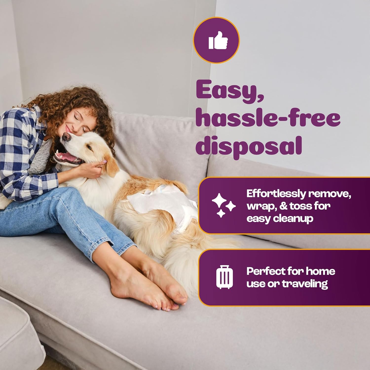 PAÑALES DESECHABLES PARA PERROS: Para uso en entrenamiento, problemas de incontinencia, micción excitable, o para viajar. Estos son pañales ideales para perritas en celo proporcionando la máxima protección y comodidad para evitar accidentes durante su ciclo. Pañales de período de perro hembra.