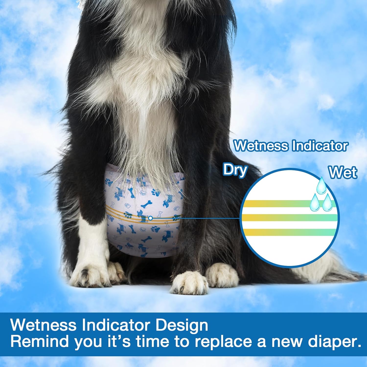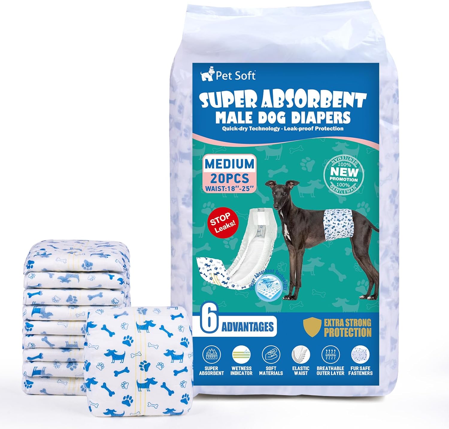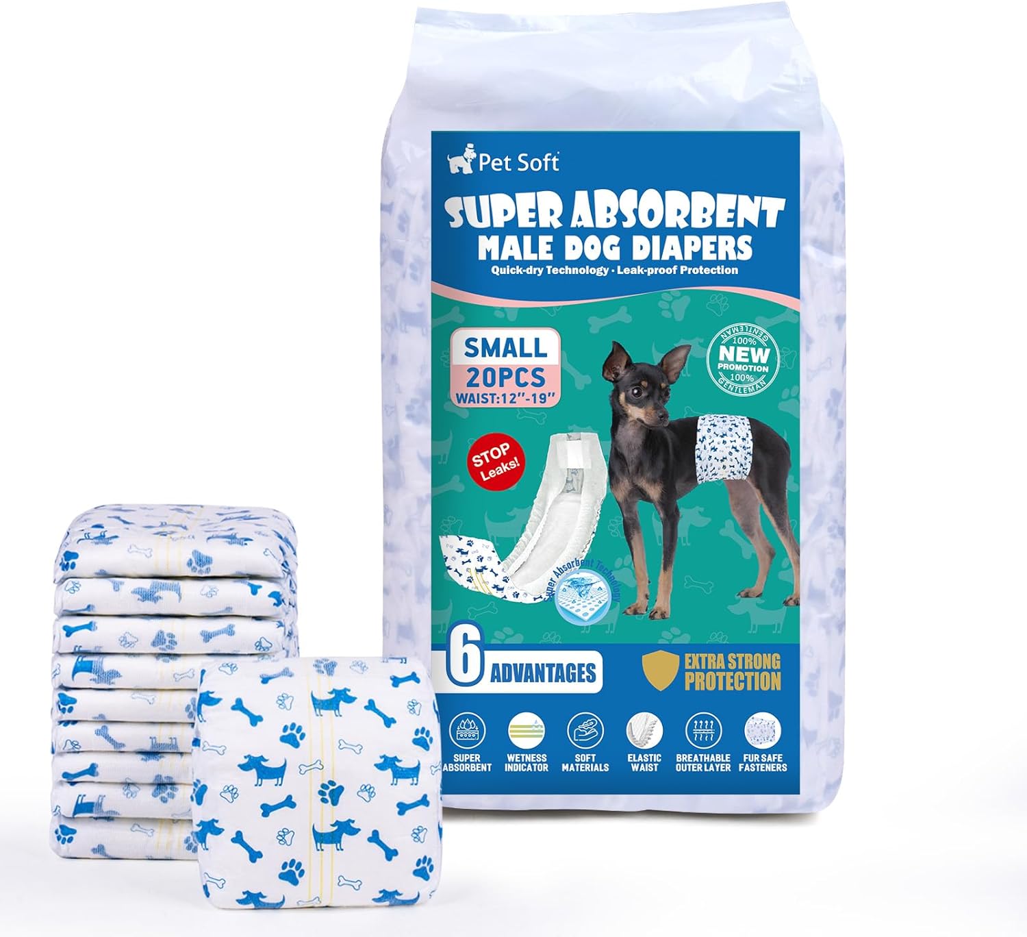 Pañales ultra absorbentes: 20 unidades por paquete, con patrón de perros azules. Los pañales para perros machos proporcionan a tu cachorro protección a prueba de fugas, el núcleo súper absorbente puede absorber la orina rápidamente, traer más comodidad a los cachorros