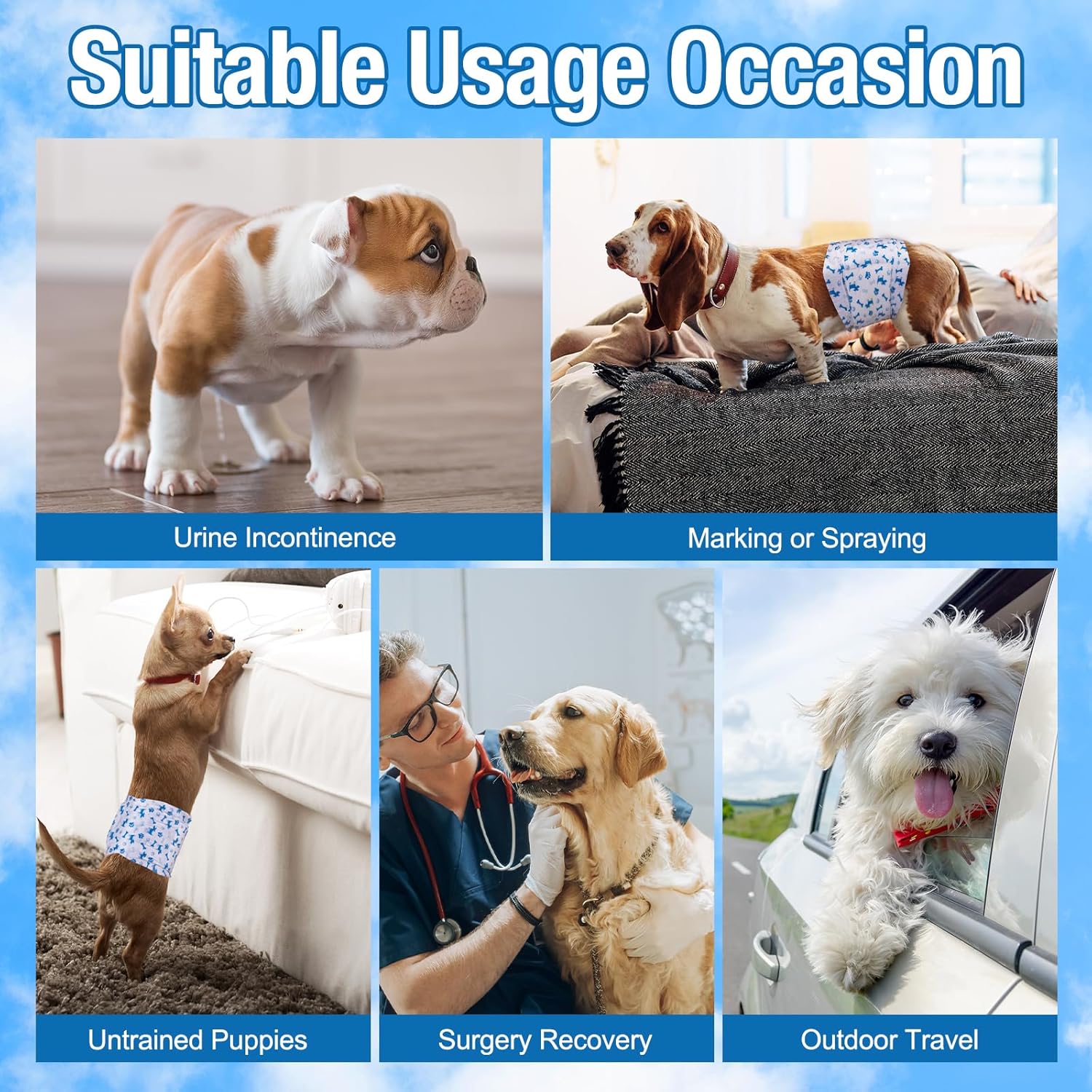 Pañales ultra absorbentes: nuestros pañales para perros machos son más gruesos que la mayoría de los pañales machos, tienen una gran absorción y buena calidad, pueden ayudarte a resolver todos los problemas como prevención de marcas, incontinencia urinaria, entrenamiento de perros, viajes al aire libre, recuperación de cirugía.