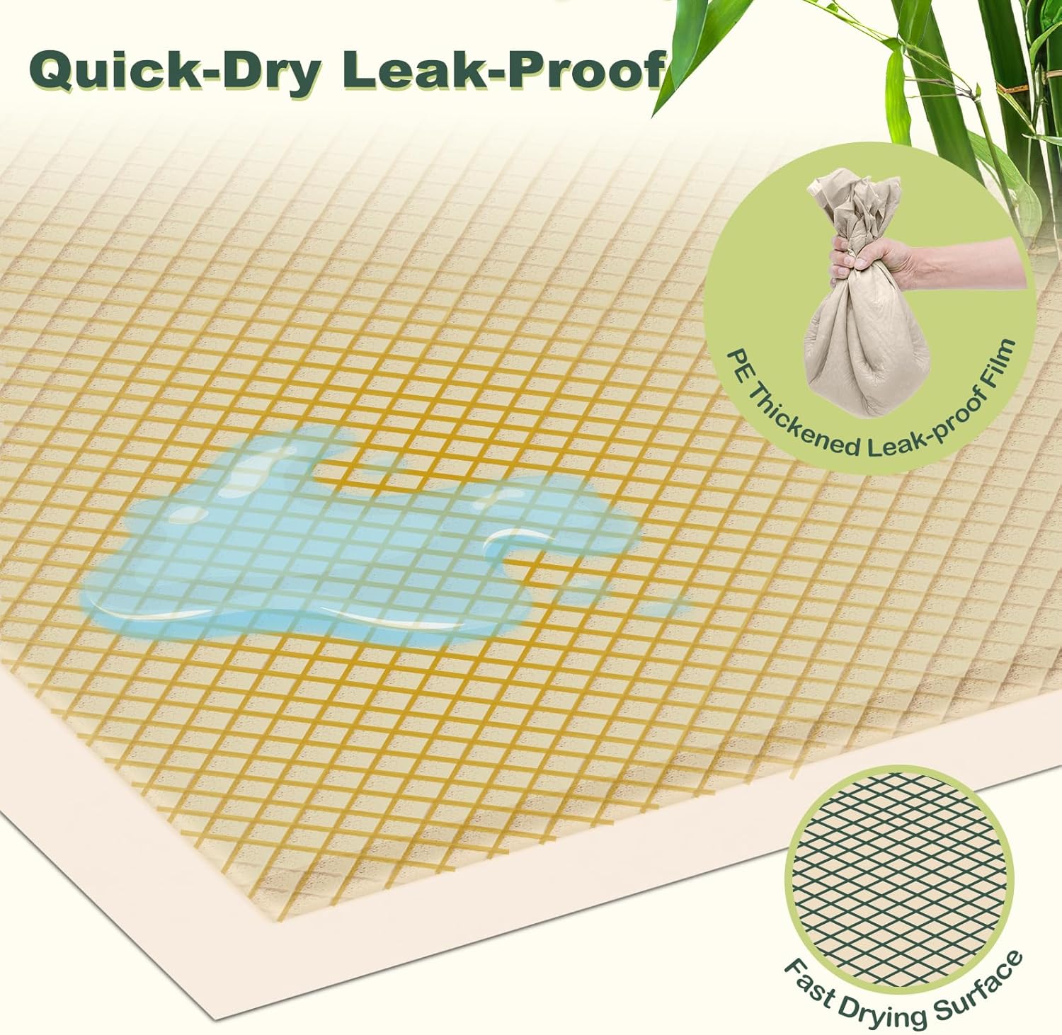 Almohadillas de bambú sostenibles: las almohadillas de orina MIZOK están hechas de fibras de bambú, un material rápidamente renovable cosechado a los 3-5 años para una opción sostenible en almohadillas de entrenamiento para cachorros