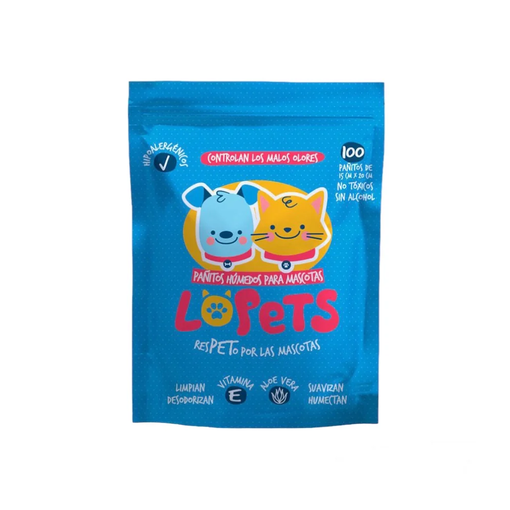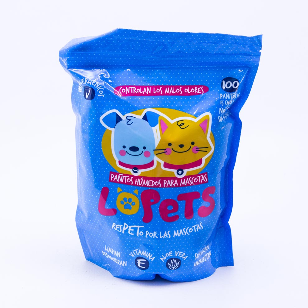 Pañitos húmedos para mascotas Marca Lopets 100 unidades.