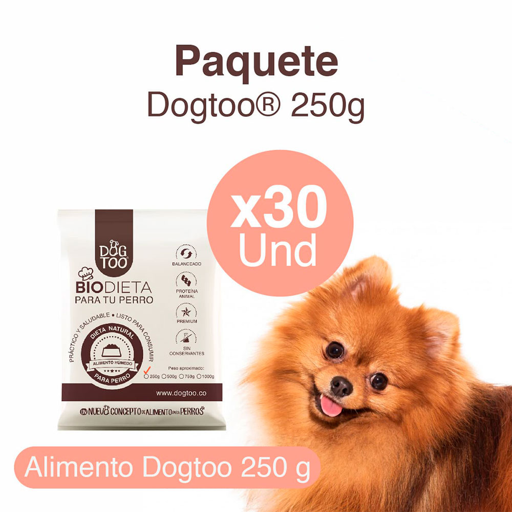 Paquete Biodieta Dogtoo 250 g. x 30 unidades