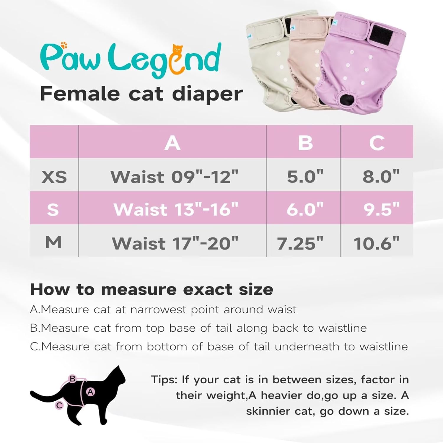 Ajuste correcto: este pañal para gatos se adapta a tamaños de cintura de 15 a 17 pulgadas, adecuado para gatos pequeños. Mide la cintura de tu gato cerca de las patas traseras y compara con nuestra tabla de tallas para el mejor ajuste. Ofrecemos varios tamaños para gatos en todas las etapas de crecimiento