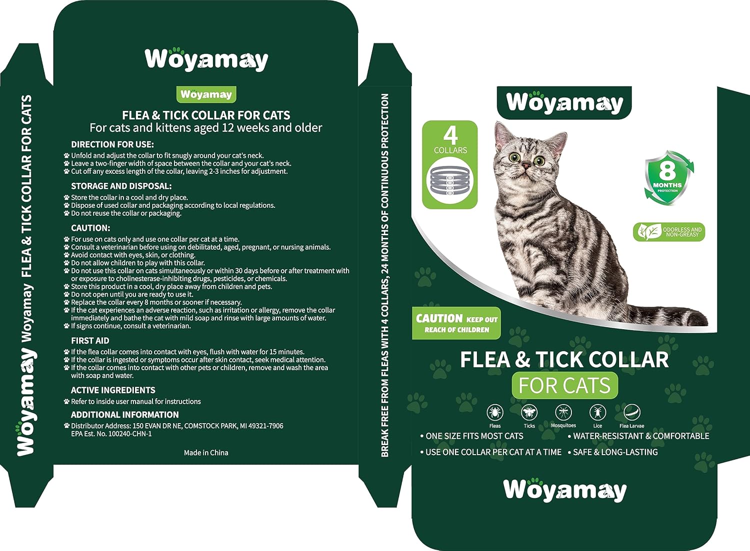 Paquete de 4 Collares Antipulgas para Gatos Woyamay