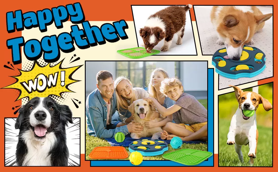 Vida saludable y diversión interactiva: nuestras alfombrillas para lamer y rompecabezas apoyan los hábitos alimenticios lentos y ayudan a la digestión. Las bolas de tratamiento promueven la actividad y apoyan la salud física y la digestión. Los juegos interactivos fortalecen el vínculo con tu cachorro
