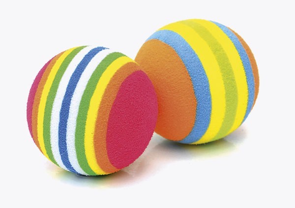 Hermosa Pelota de Fique con plumas en colores llamativos,